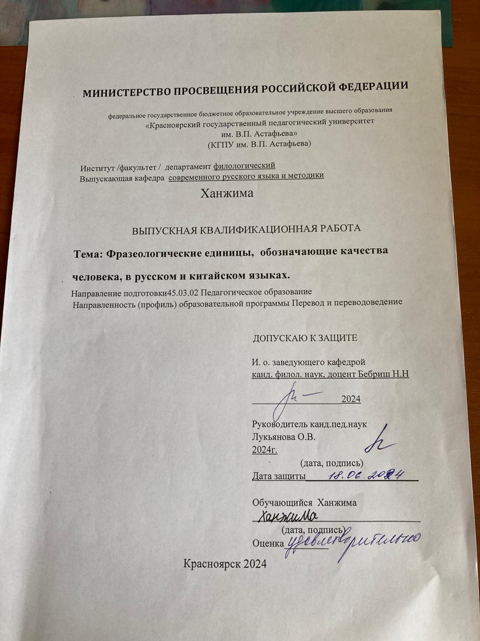 Фразеологические единицы , обозначающие качества человека, в русском и китайском языках
