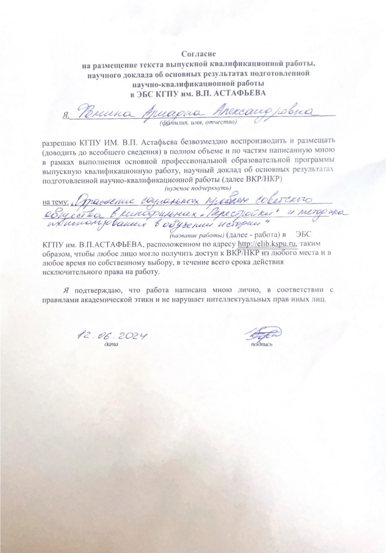 ОТРАЖЕНИЕ СОЦИАЛЬНЫХ ПРОБЛЕМ СОВЕТСКОГО ОБЩЕСТВА В КИНОФИЛЬМАХ «ПЕРЕСТРОЙКИ» И МЕТОДИКА ИХ ИСПОЛЬЗОВАНИЯ В ОБУЧЕНИИ ИСТОРИИ