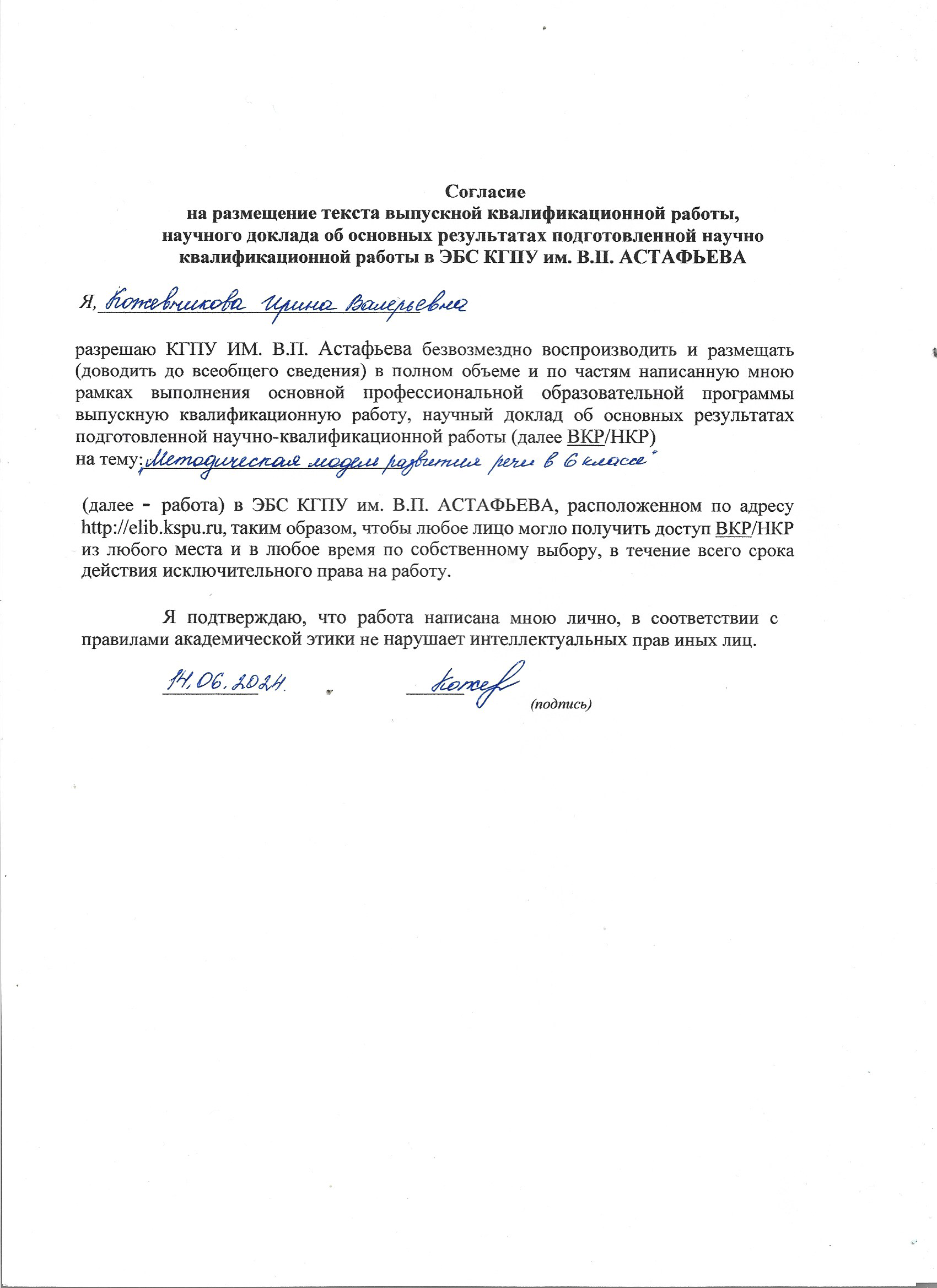Методическая модель развития речи в 6 классе
