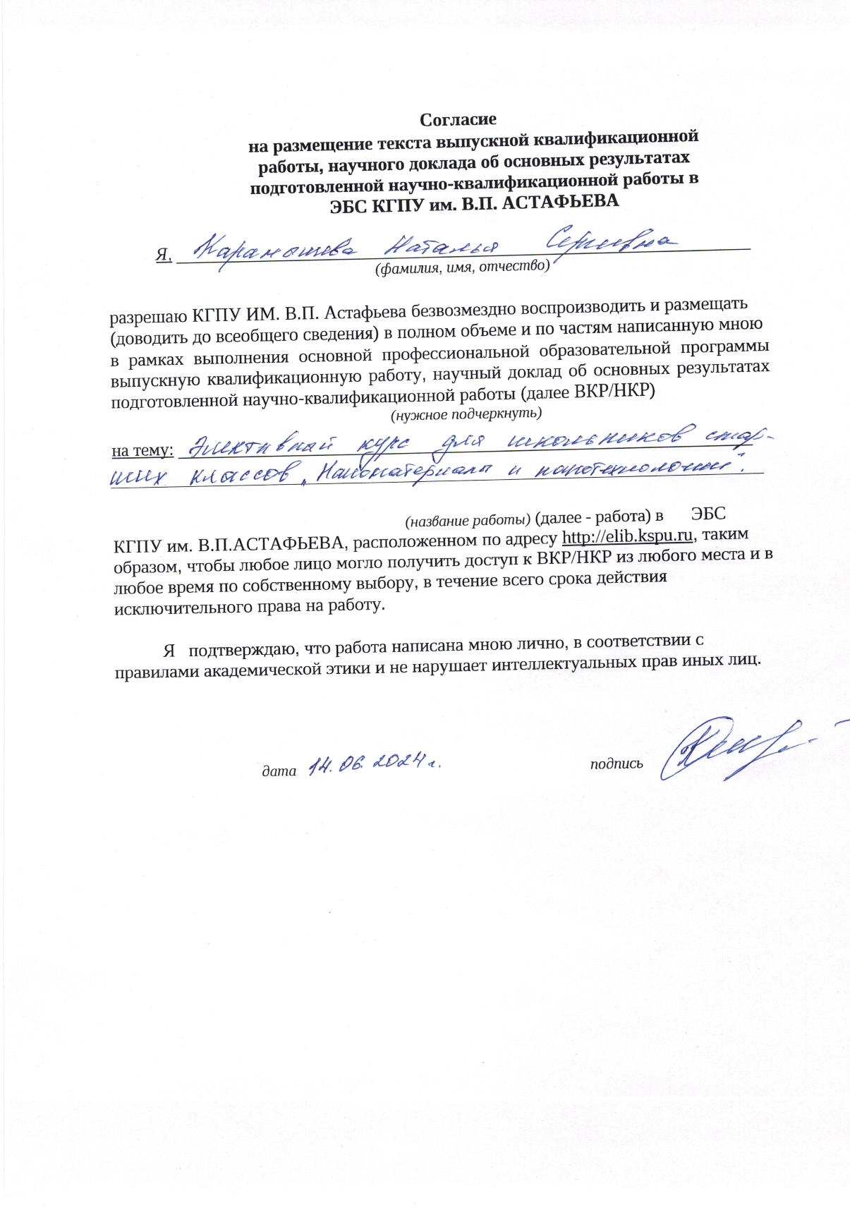 Разработка элективного курса для школьников старших классо "Наноматериалы и нанотехнологии"