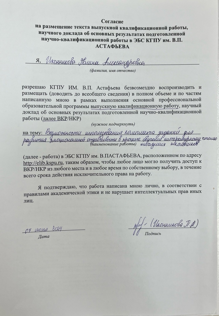 Возможности использования комплекта заданий для развития эмоциональной отзывчивости в процессе обучения литературному чтению младших школьников