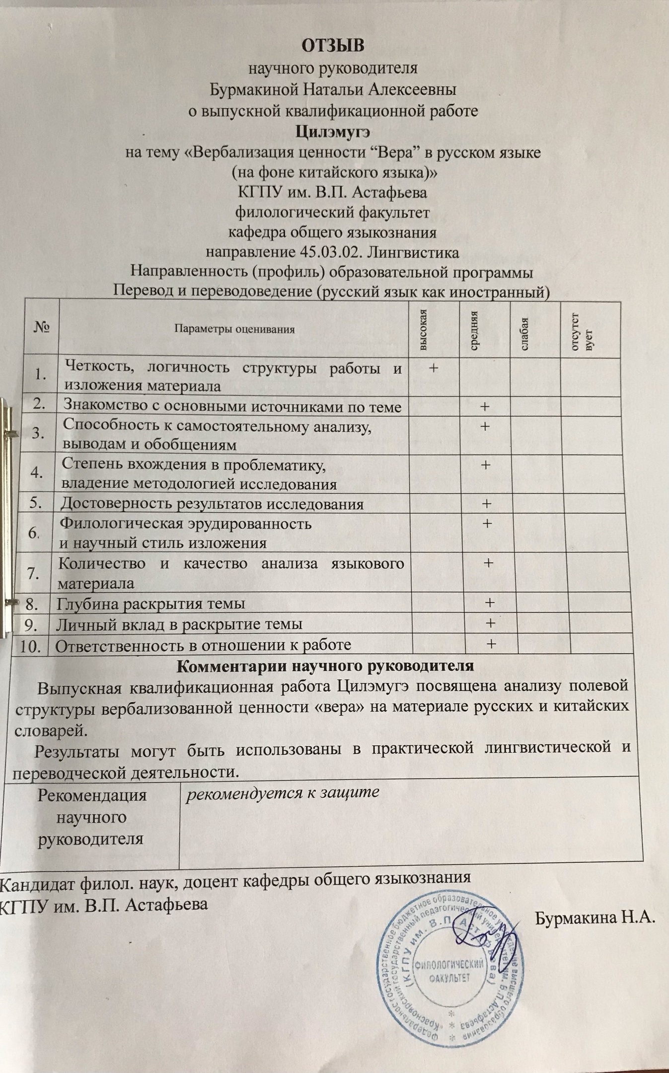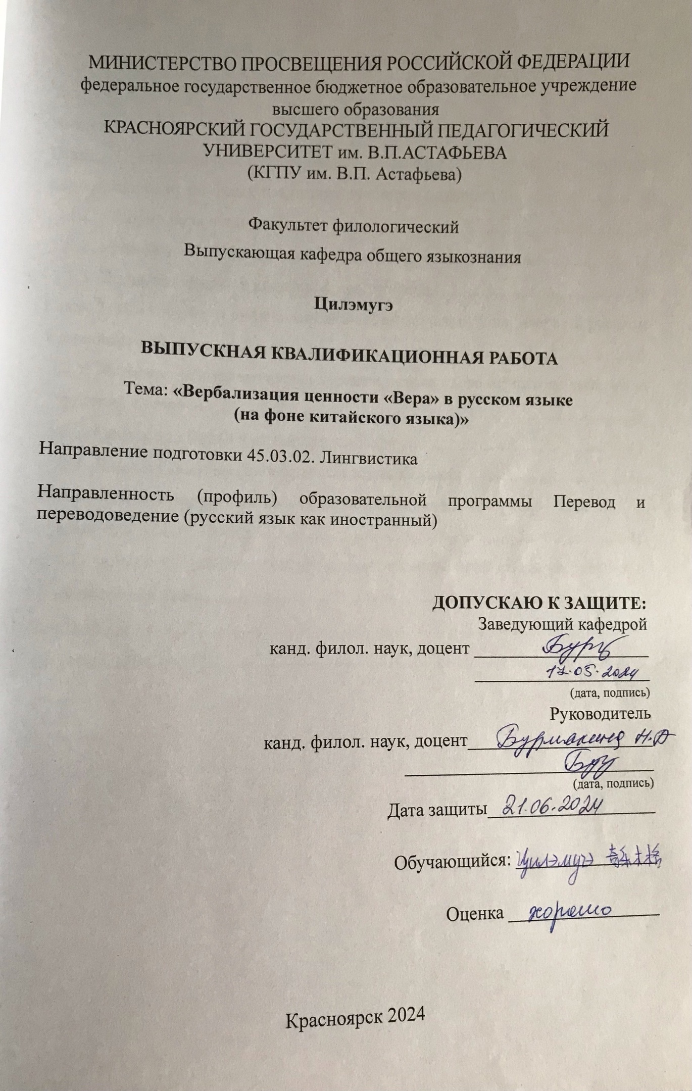 Вербализация ценности “Вера” в русском языке (на фоне китайского языка)