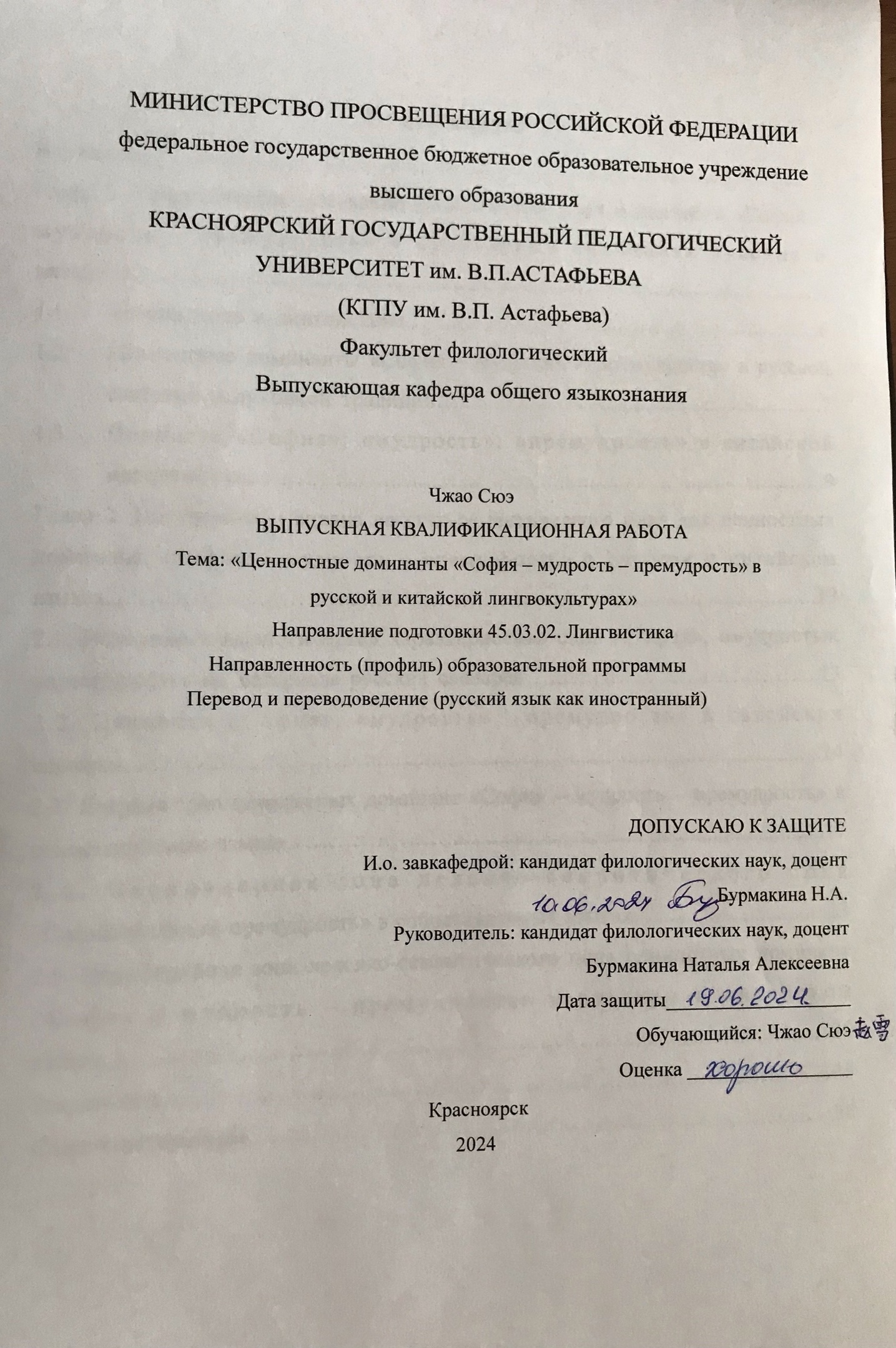 Ценностные доминанты «София – мудрость – премудрость» в русской и китайской лингвокультурах
