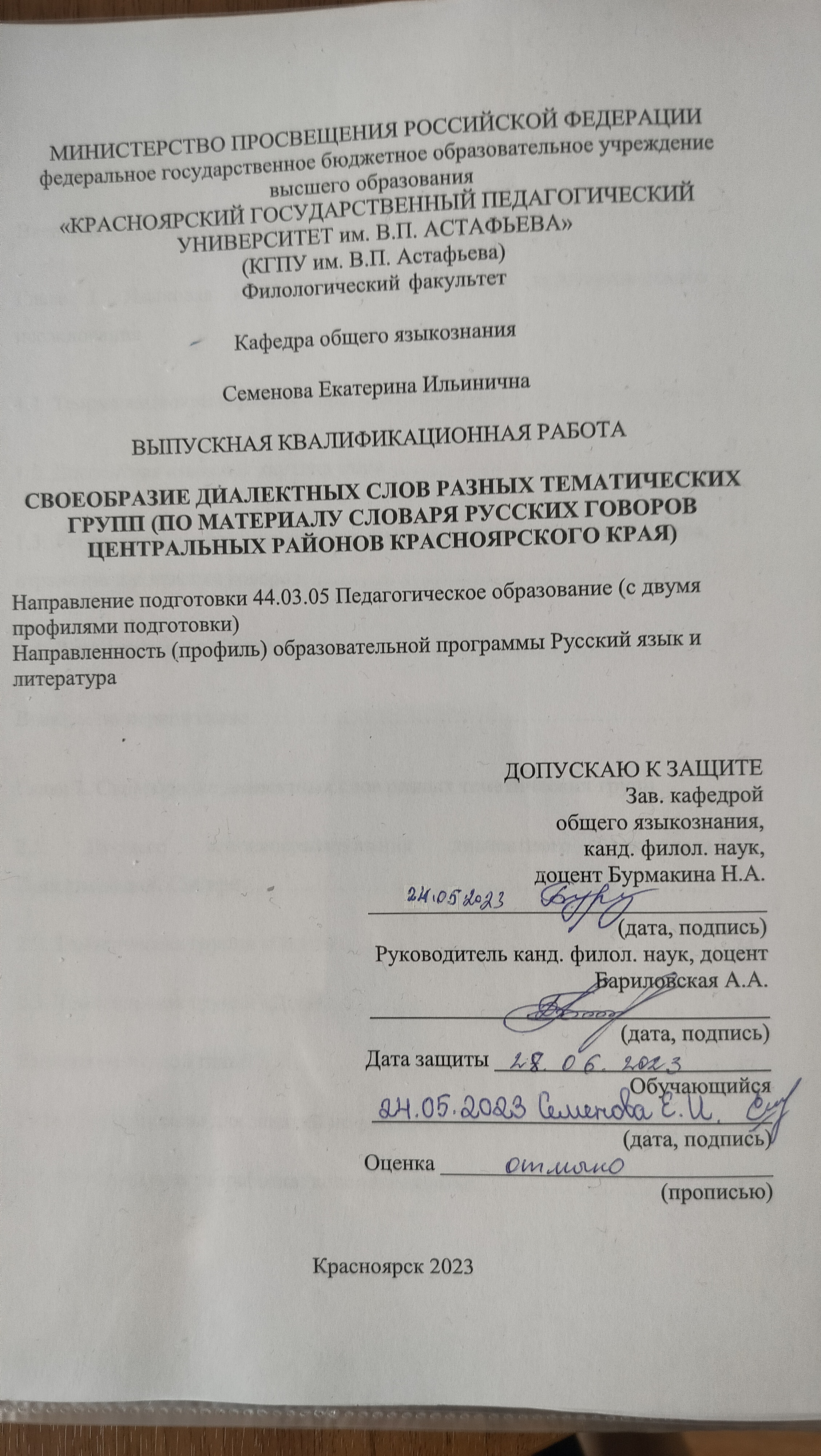 СВОЕОБРАЗИЕ ДИАЛЕКТНЫХ СЛОВ РАЗНЫХ ТЕМАТИЧЕСКИХ ГРУПП (ПО МАТЕРИАЛАМ СЛОВАРЯ РУССКИХ ГОВОРОВ ЦЕНТРАЛЬНЫХ РАЙОНОВ КРАСНОЯРСКОГО КРАЯ)