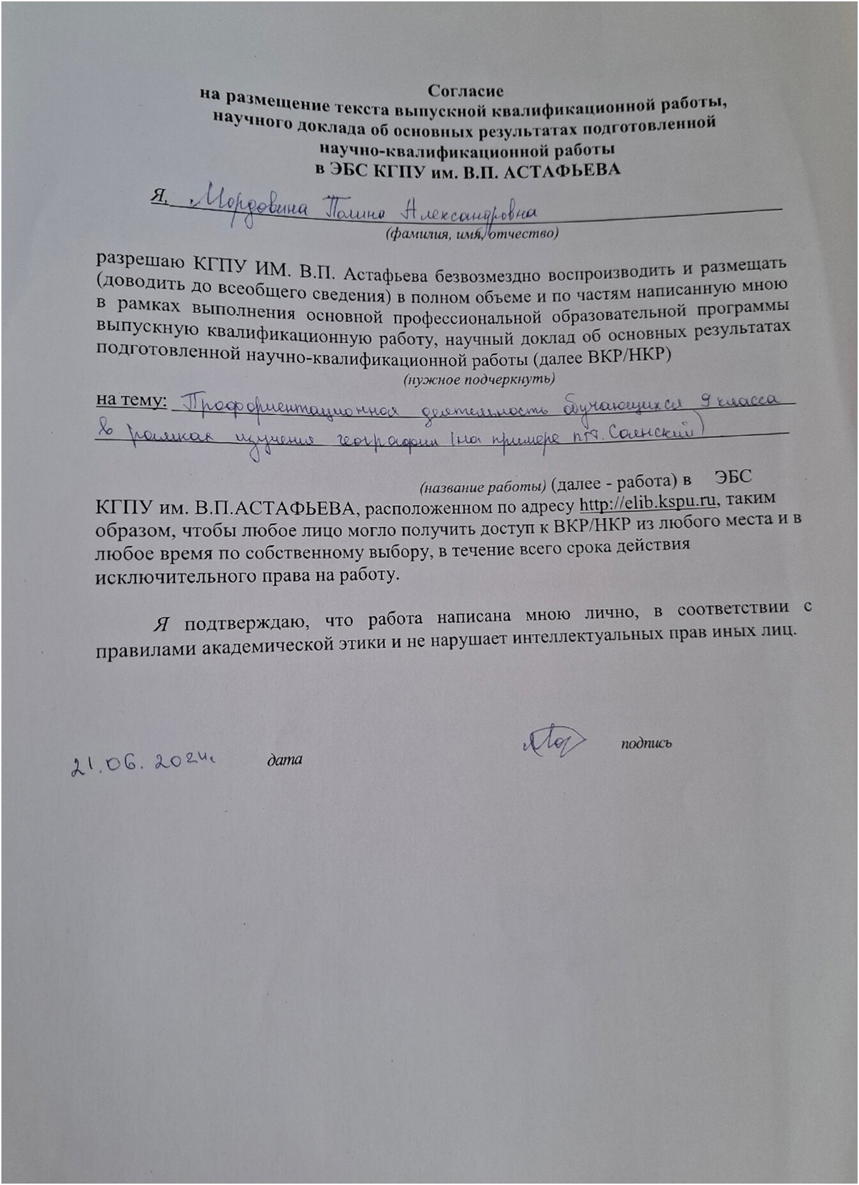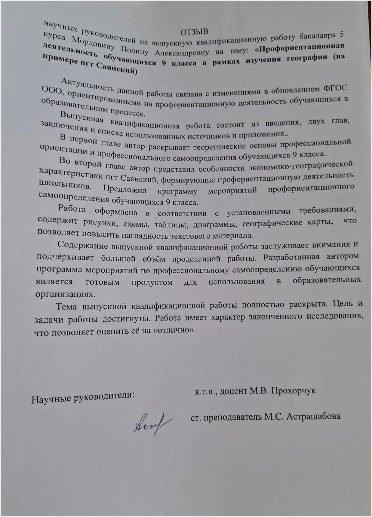 Профориентационная деятельность обучающихся 9 класса в рамках изучения географии (на примере поселка городского типа Саянский)