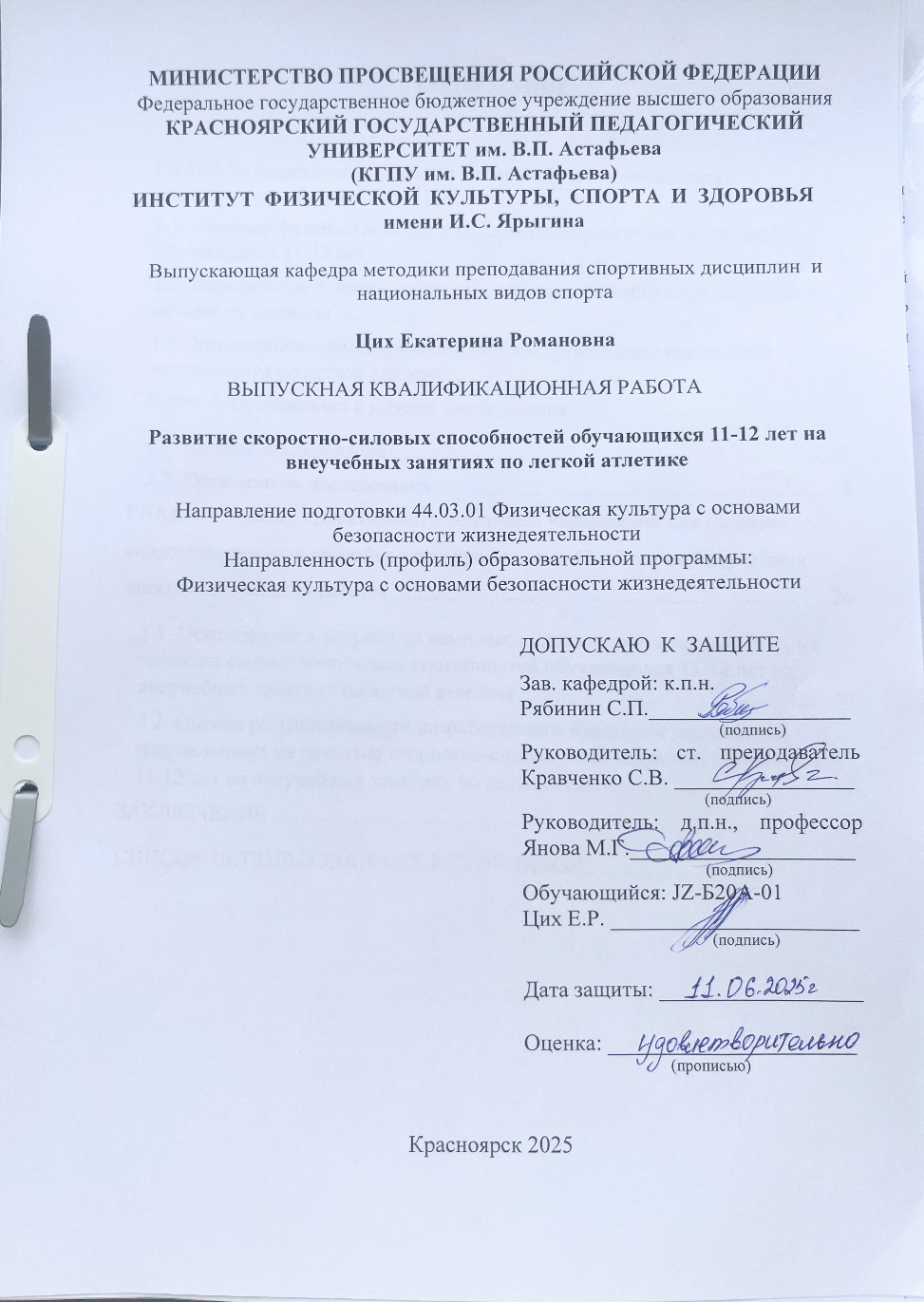 Развитие скоростно-силовых способностей обучающихся 11-12 лет на внеучебных занятиях по легкой атлетике