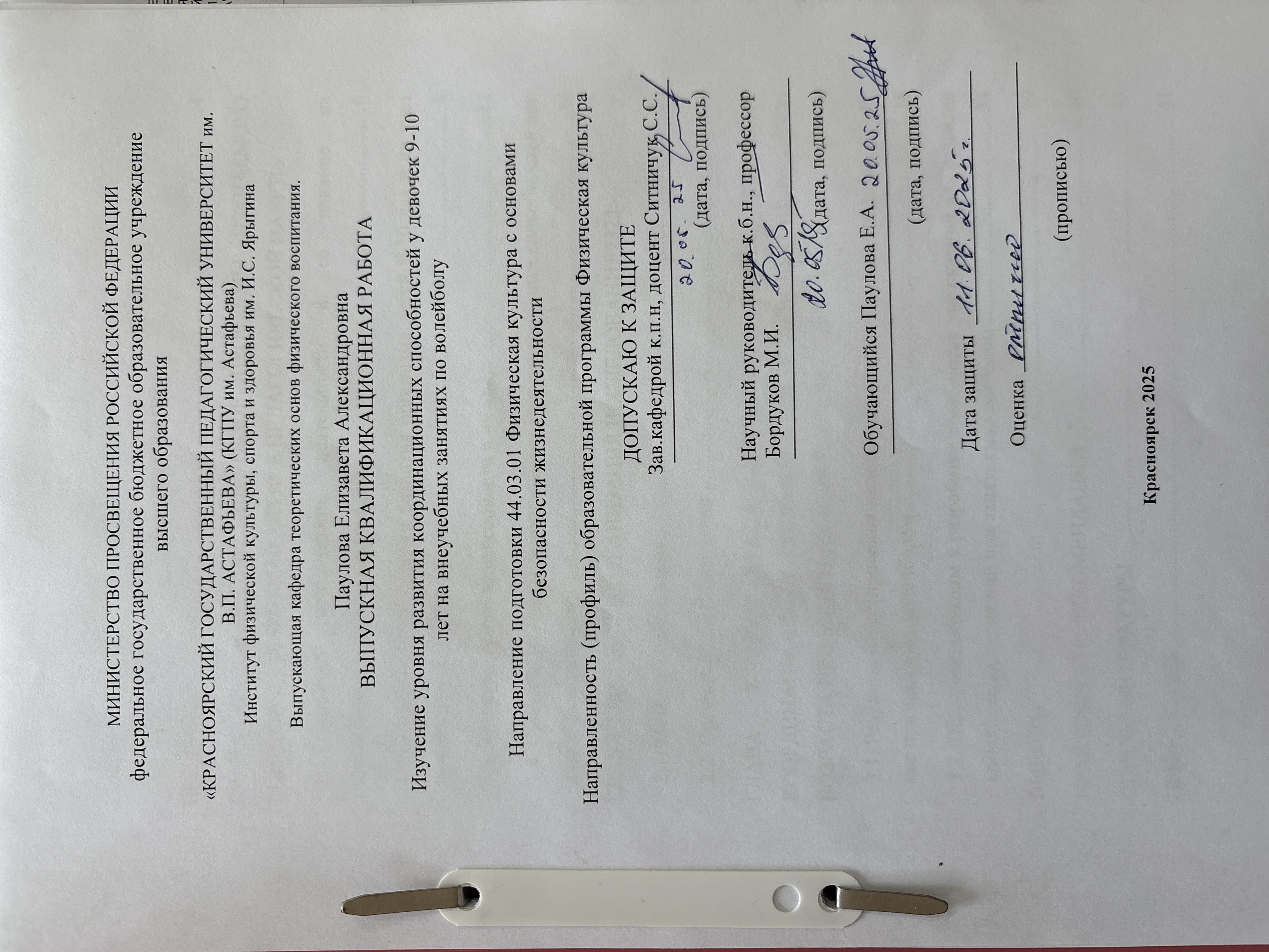 Изучение уровня развития координационных способностей у девочек 9-10 лет на внеучебных занятиях по волейболу
