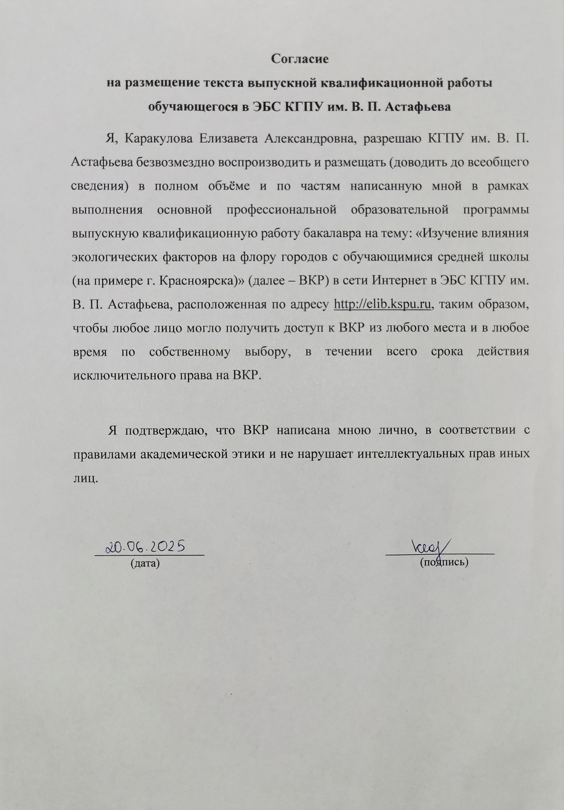 Изучение влияния экологических факторов на флору городов с обучающимися средней школы (на примере г. Красноярска)