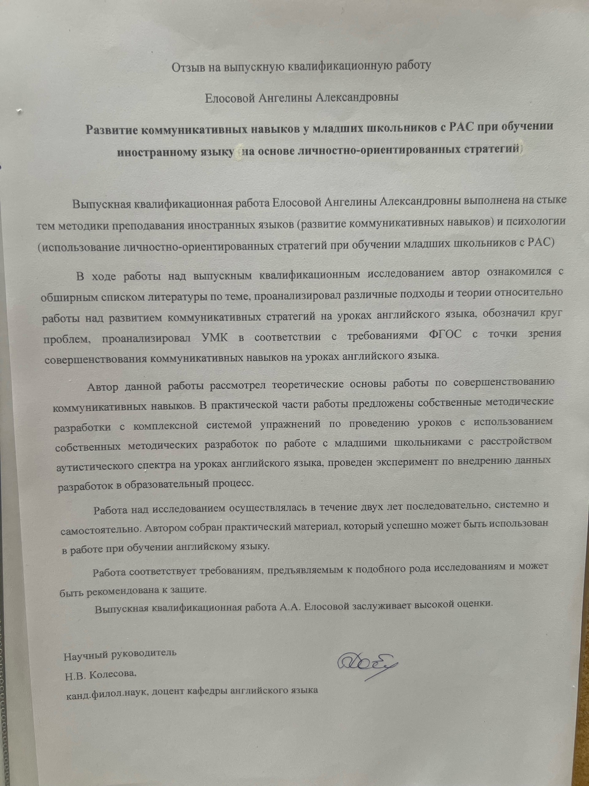 Развитие коммуникативных навыков у младших школьников с РАС при обучении иностранному языку на основе личностно-ориентированных стратегий