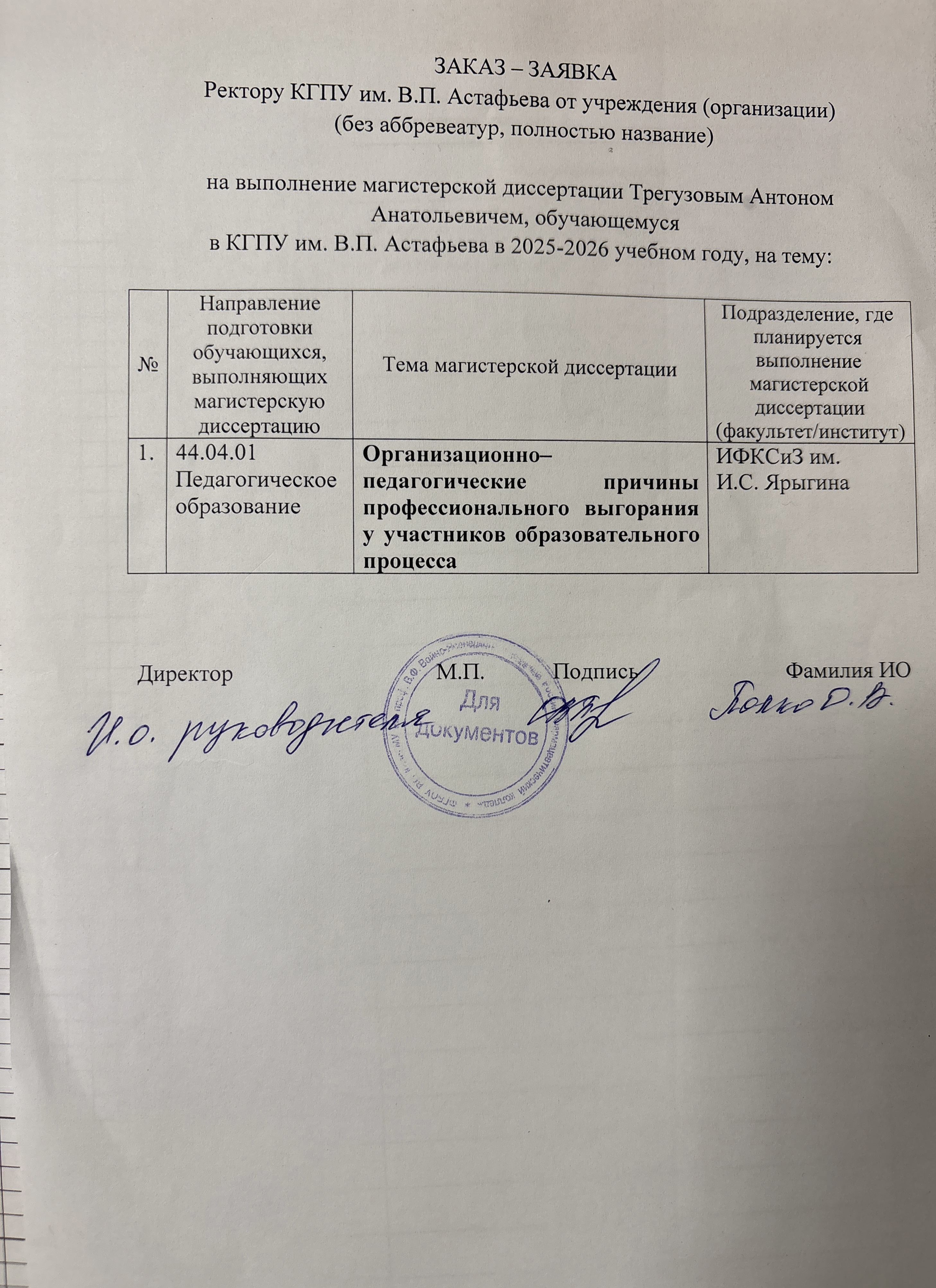 Организационно–педагогические причины профессионального выгорания, участники образовательного процесса
