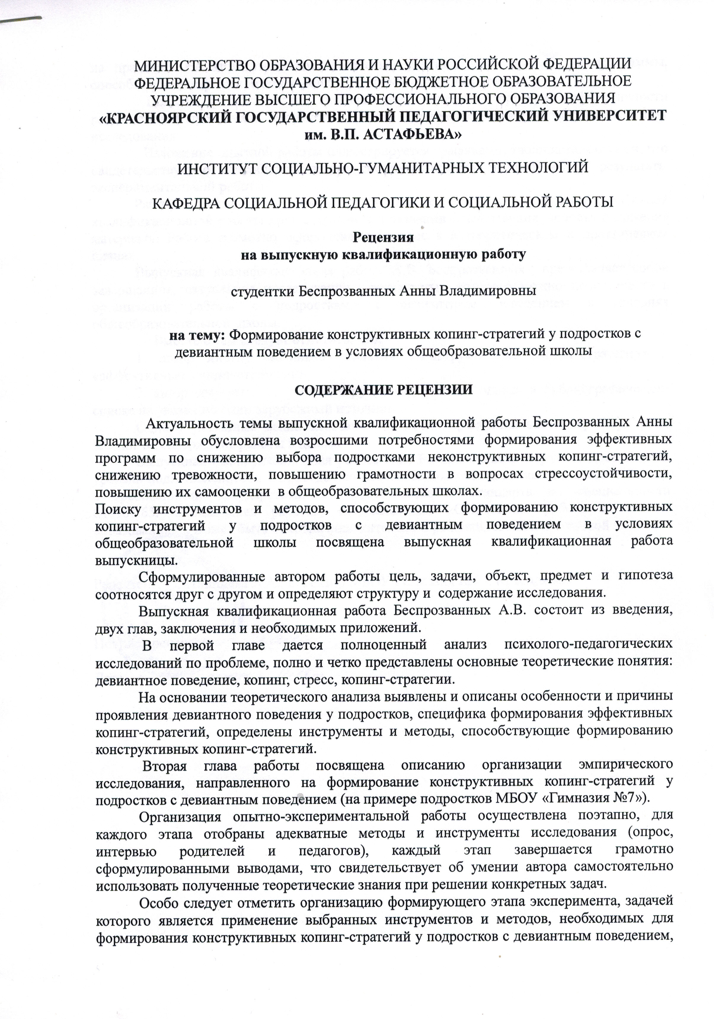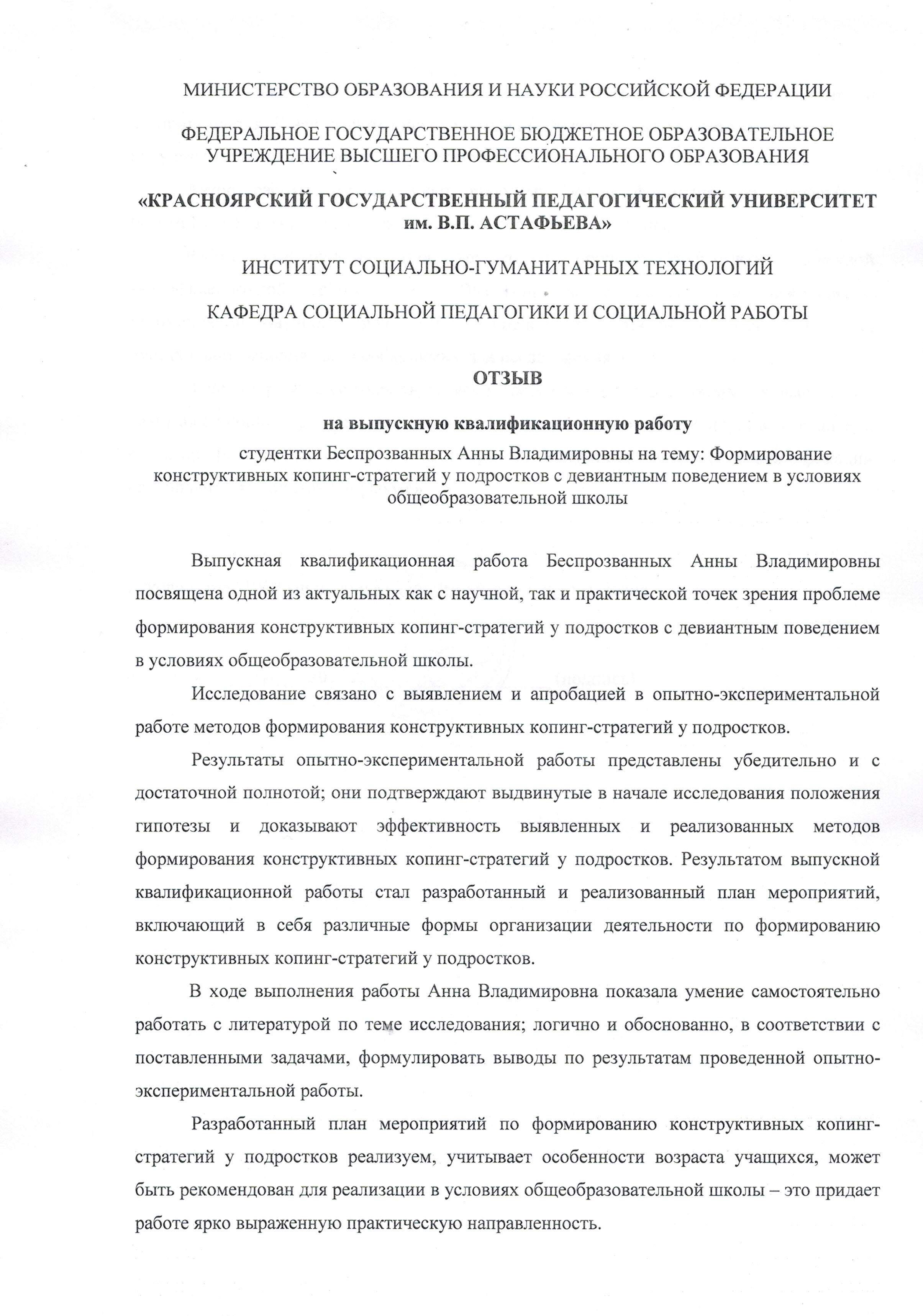 Беспрозванных А.В. ФОРМИРОВАНИЕ КОНСТРУКТИВНЫХ КОПИНГ-СТРАТЕГИЙ У ПОДРОСТКОВ С ДЕВИАНТНЫМ ПОВЕДЕНИЕМ В УСЛОВИЯХ ОБЩЕОБРАЗОВАТЕЛЬНОЙ ШКОЛЫ