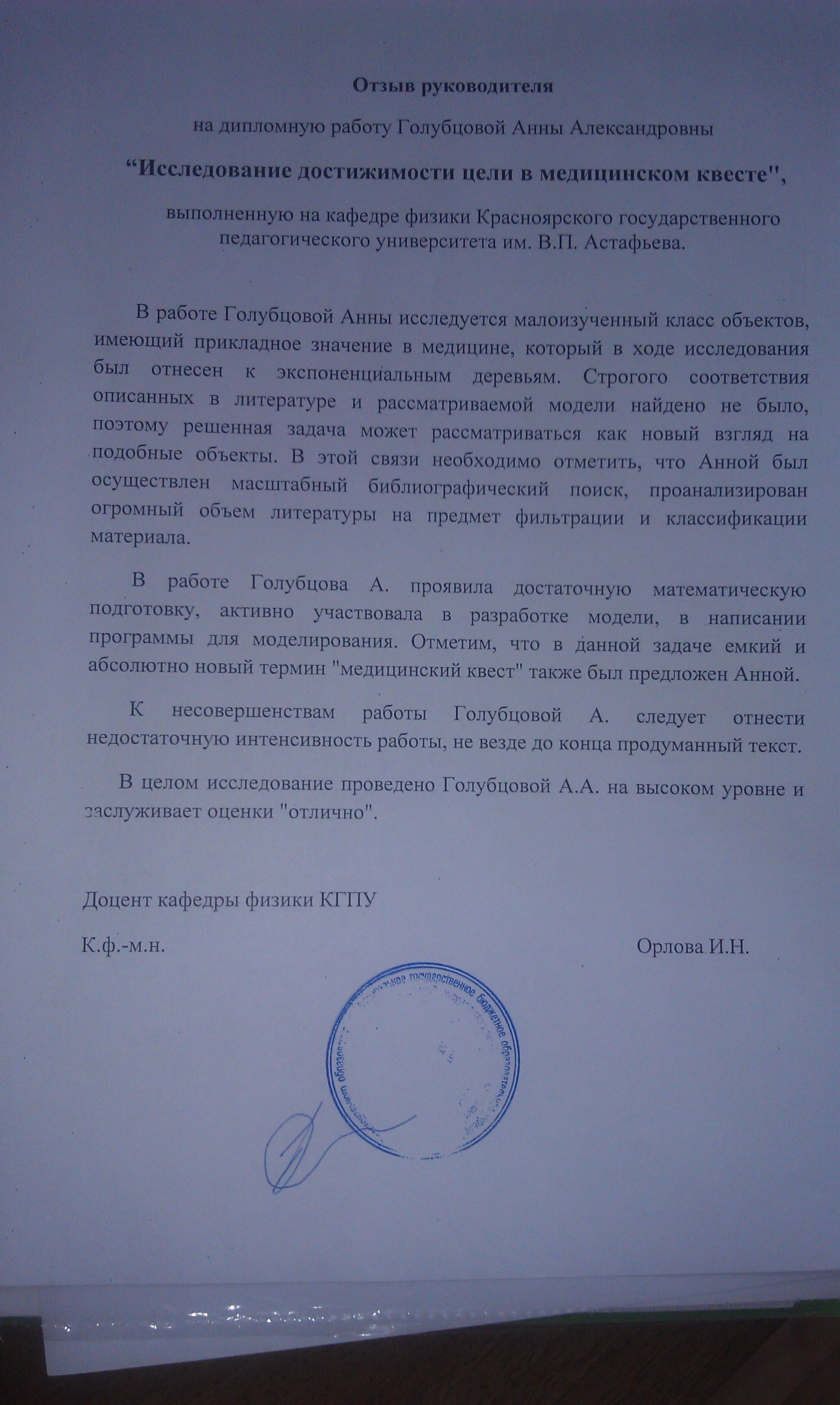 ИССЛЕДОВАНИЕ ДОСТИЖИМОСТИ ЦЕЛИ В МЕДИЦИНСКОМ КВЕСТЕ