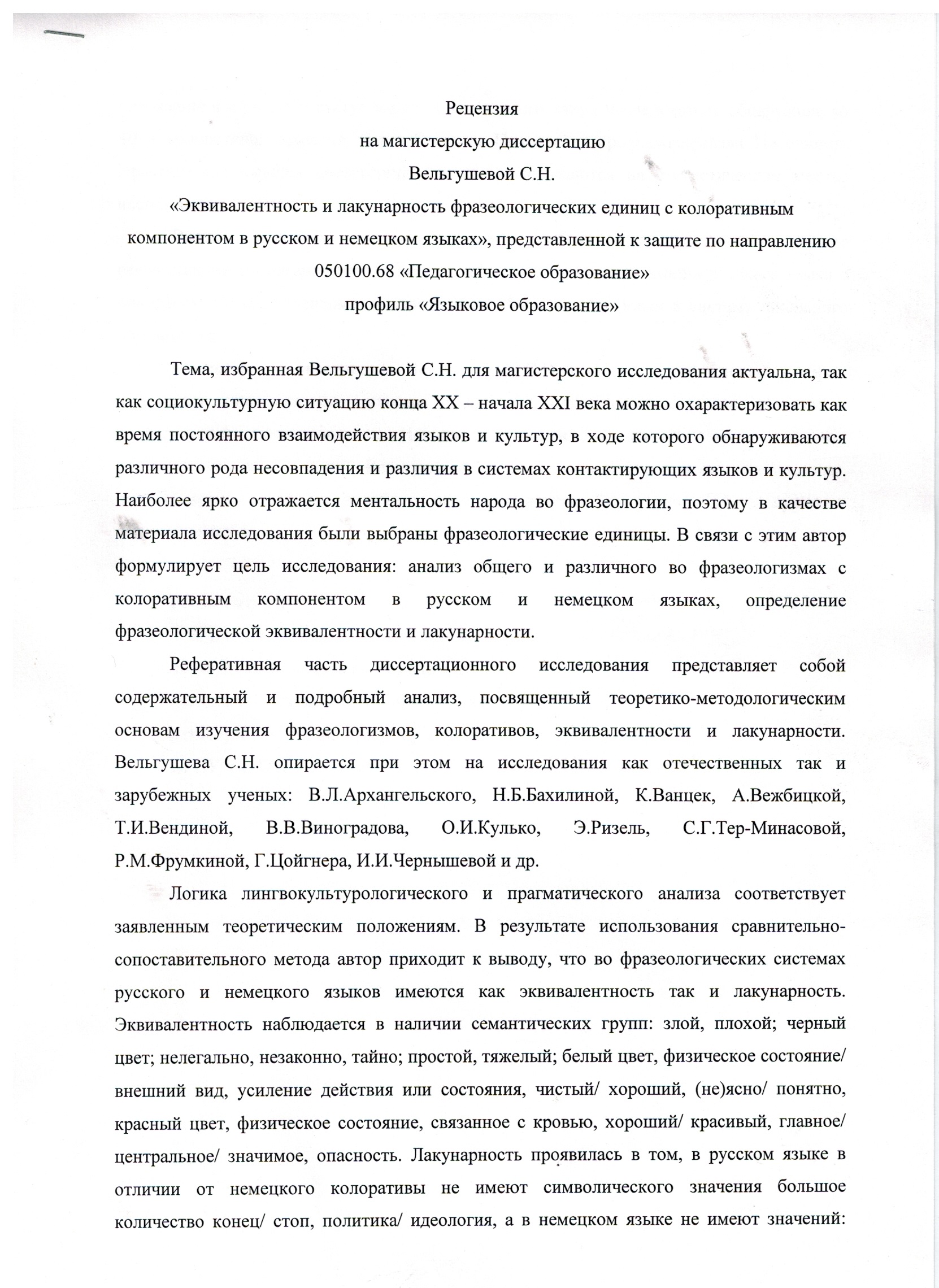 Вельгушева С.Н. Эквивалентность и лакунарность фразеологических единиц с колоративным компонентом в русском и немецком языках