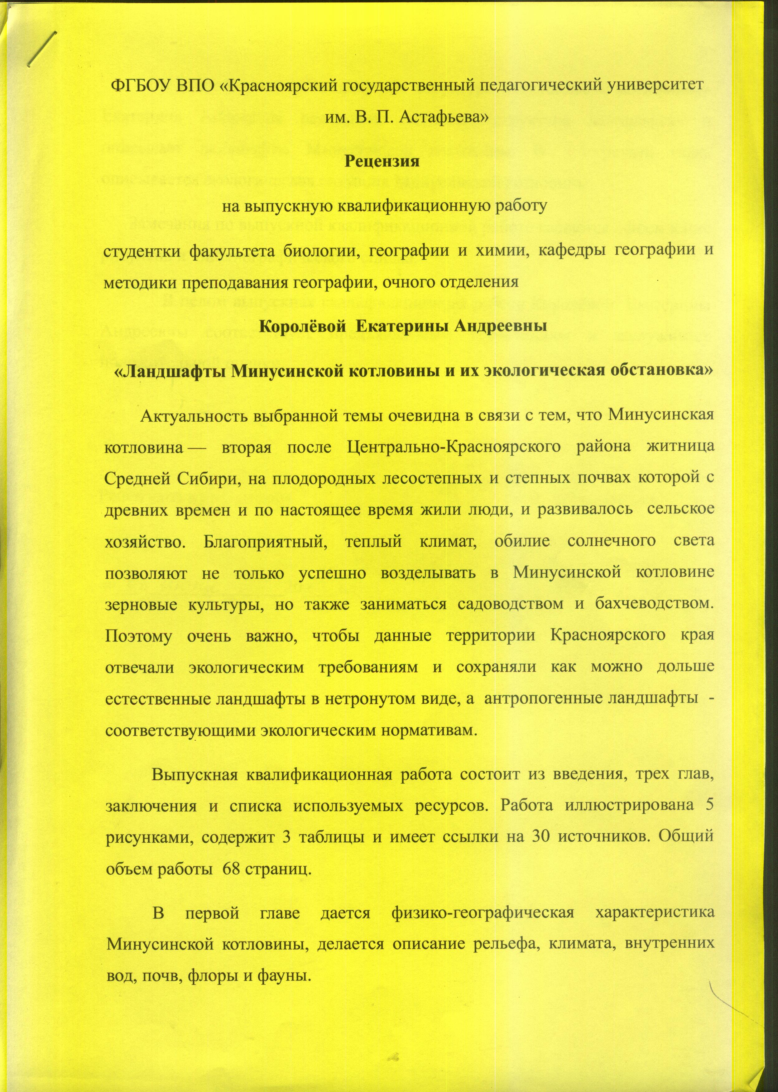Ландшафты Минусинской котловины и их экологическая обстановка