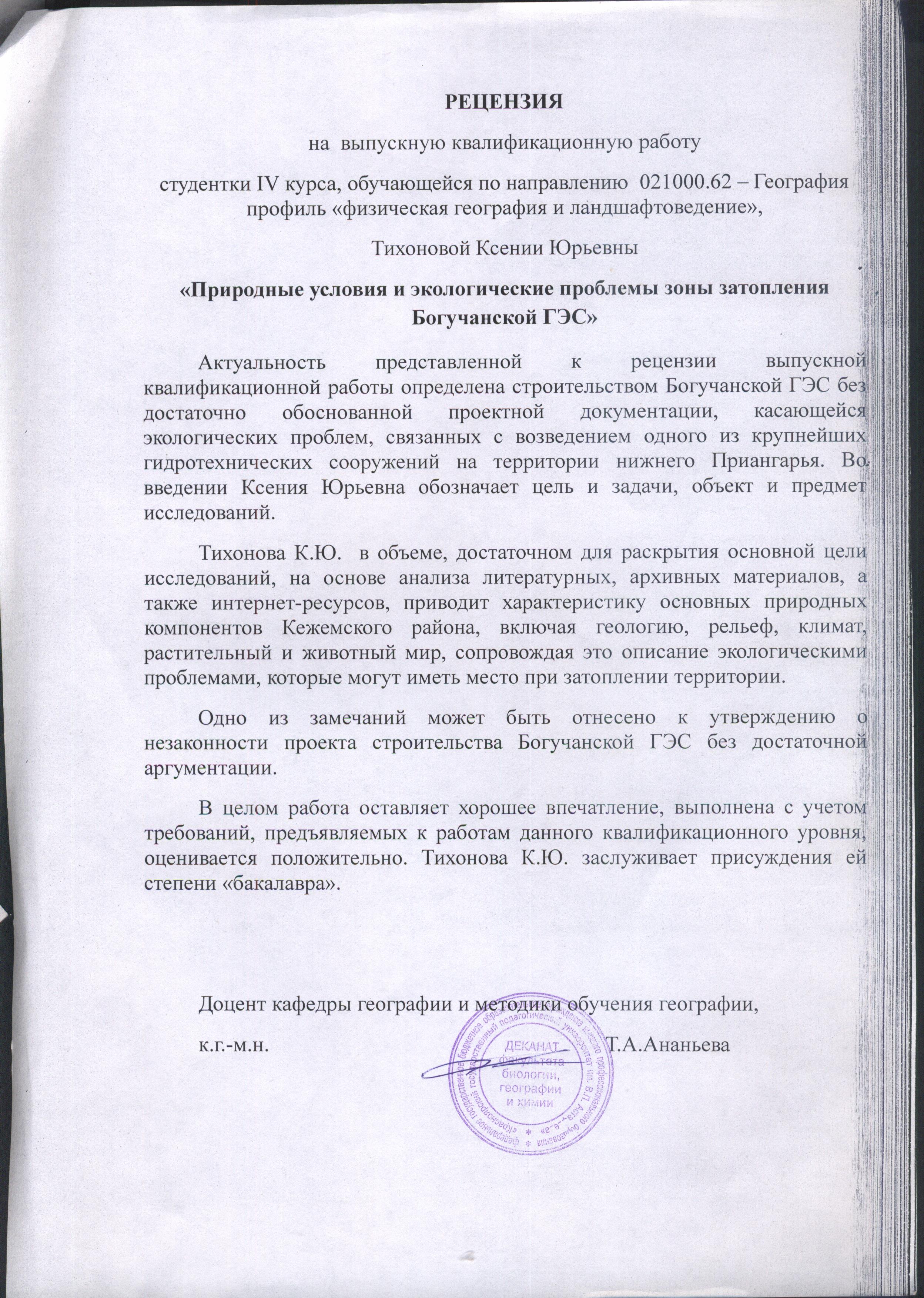 Природные условия и экологические проблемы зоны затопления Богучанской ГЭС