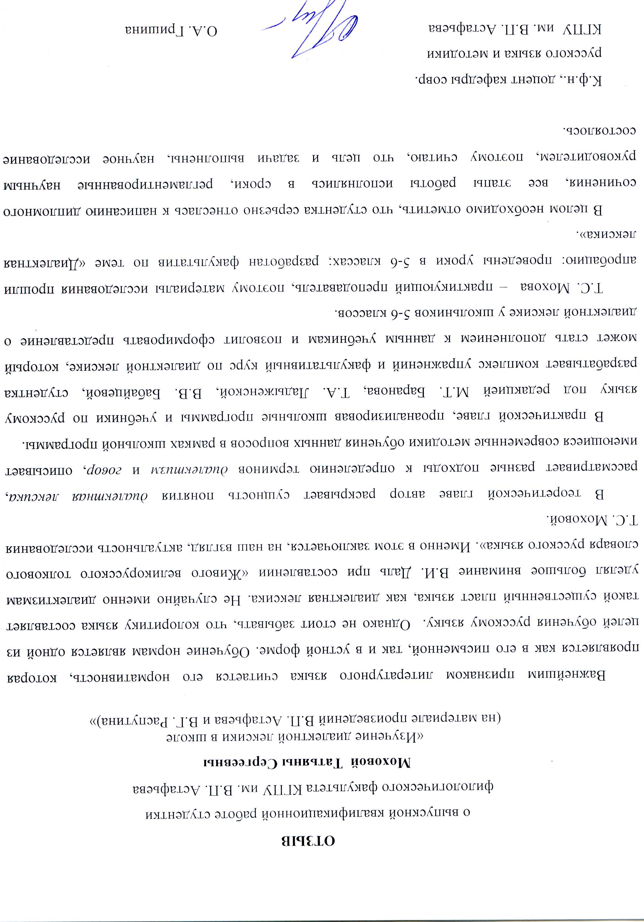 Мохова Е.С. Изучение диалектной лексики в школе (на материале произведений В.П. Астафьева и В.Г. Распутина)