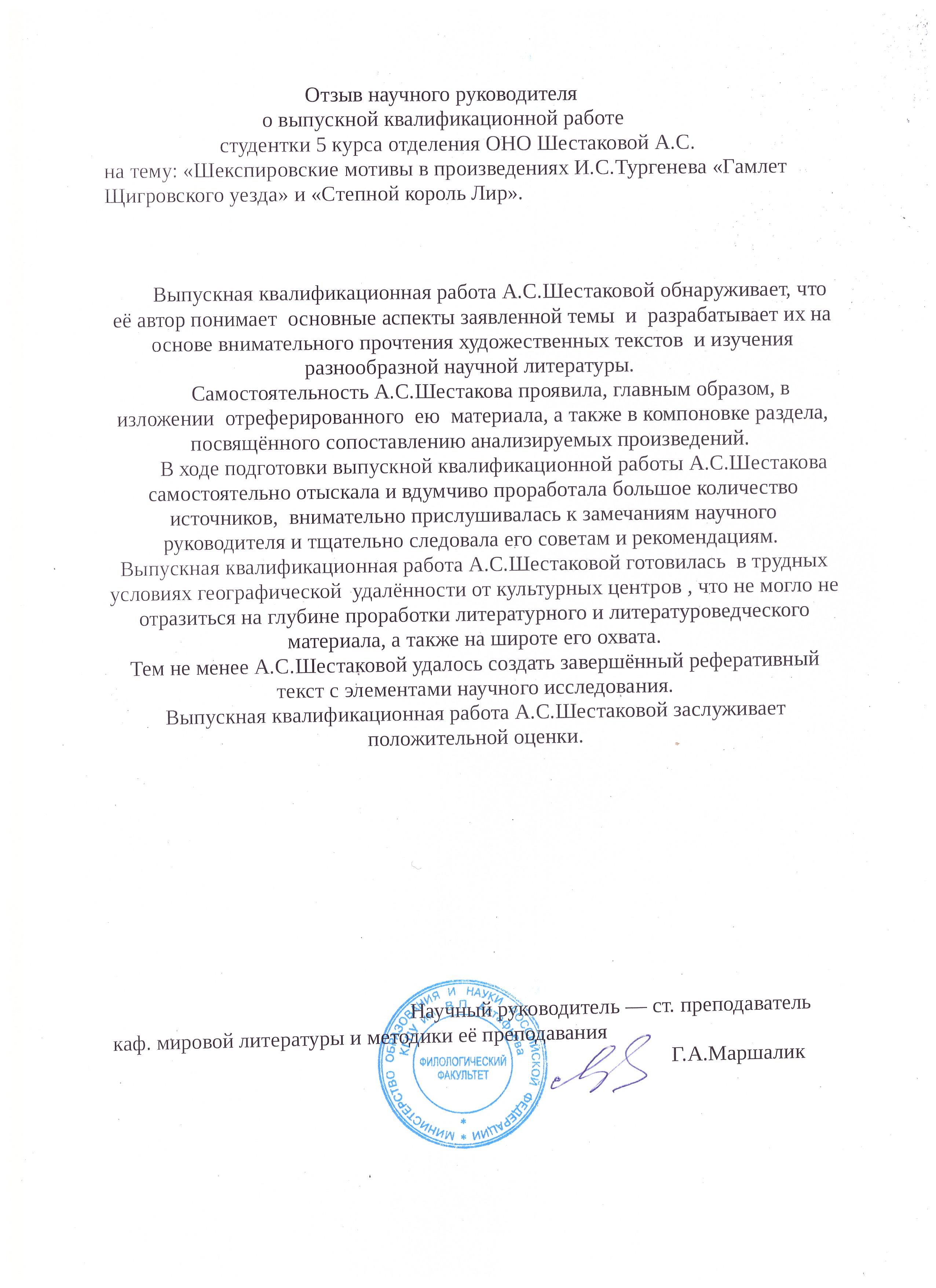 шестакова а.с. шекспировские мотивы в произведениях И.С.Тургенева "Гамлет Щигровского уезда" и "Степной король Лир"
