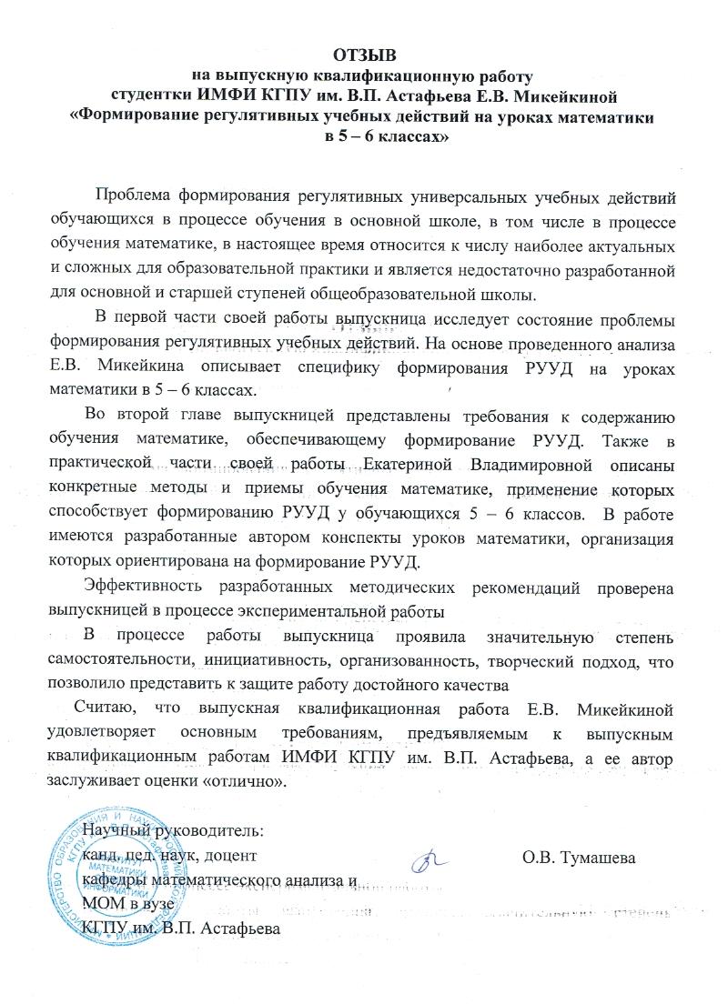 Формирование регулятивных учебных действий на уроках математики в 5 - 6 классах