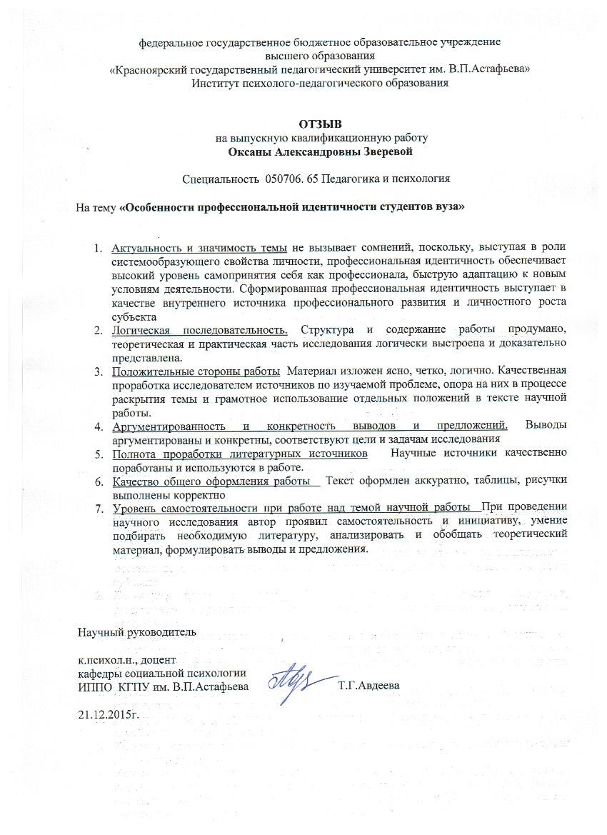 Особенности профессиональной идентичности студентов вуза