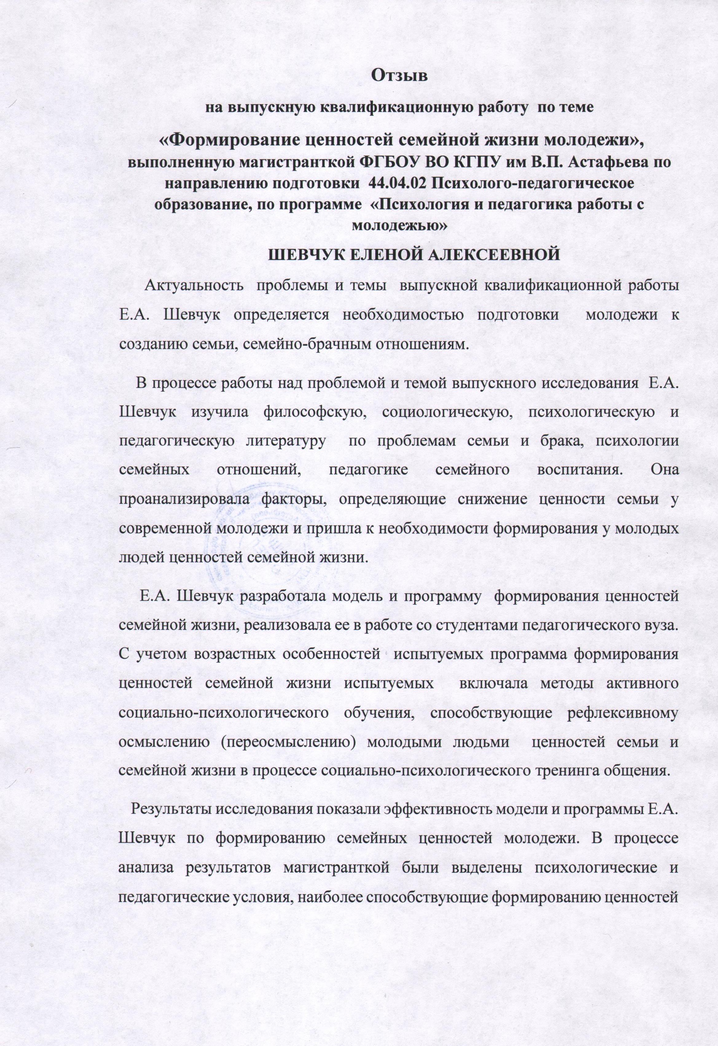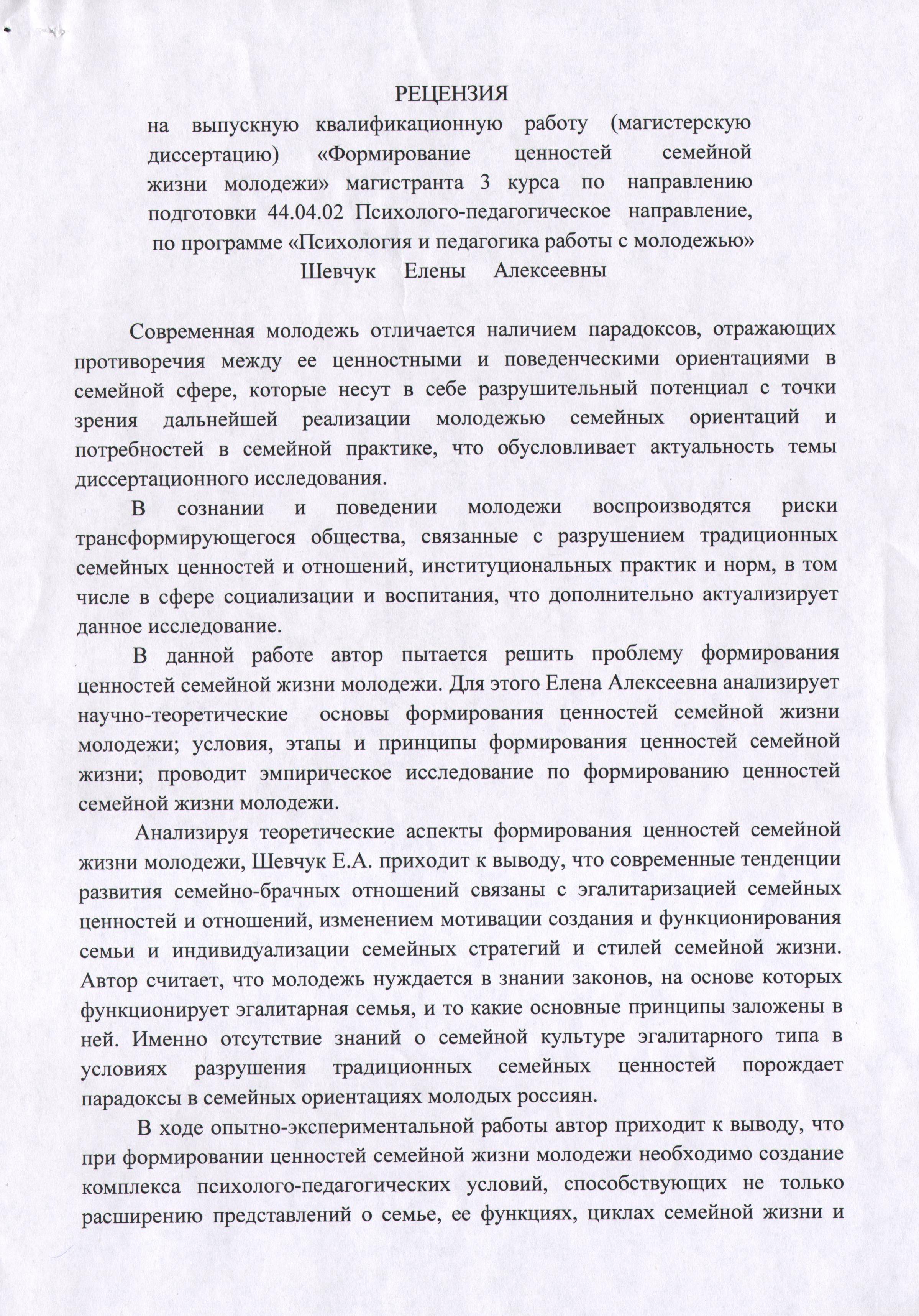 Шевчук Е.А. Формирование ценностей семейной жизни молодежи