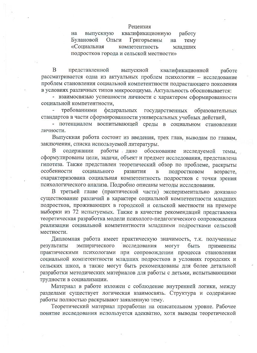 Буланова О.Г. Социальная компетентность младших подростков города и сельской местности