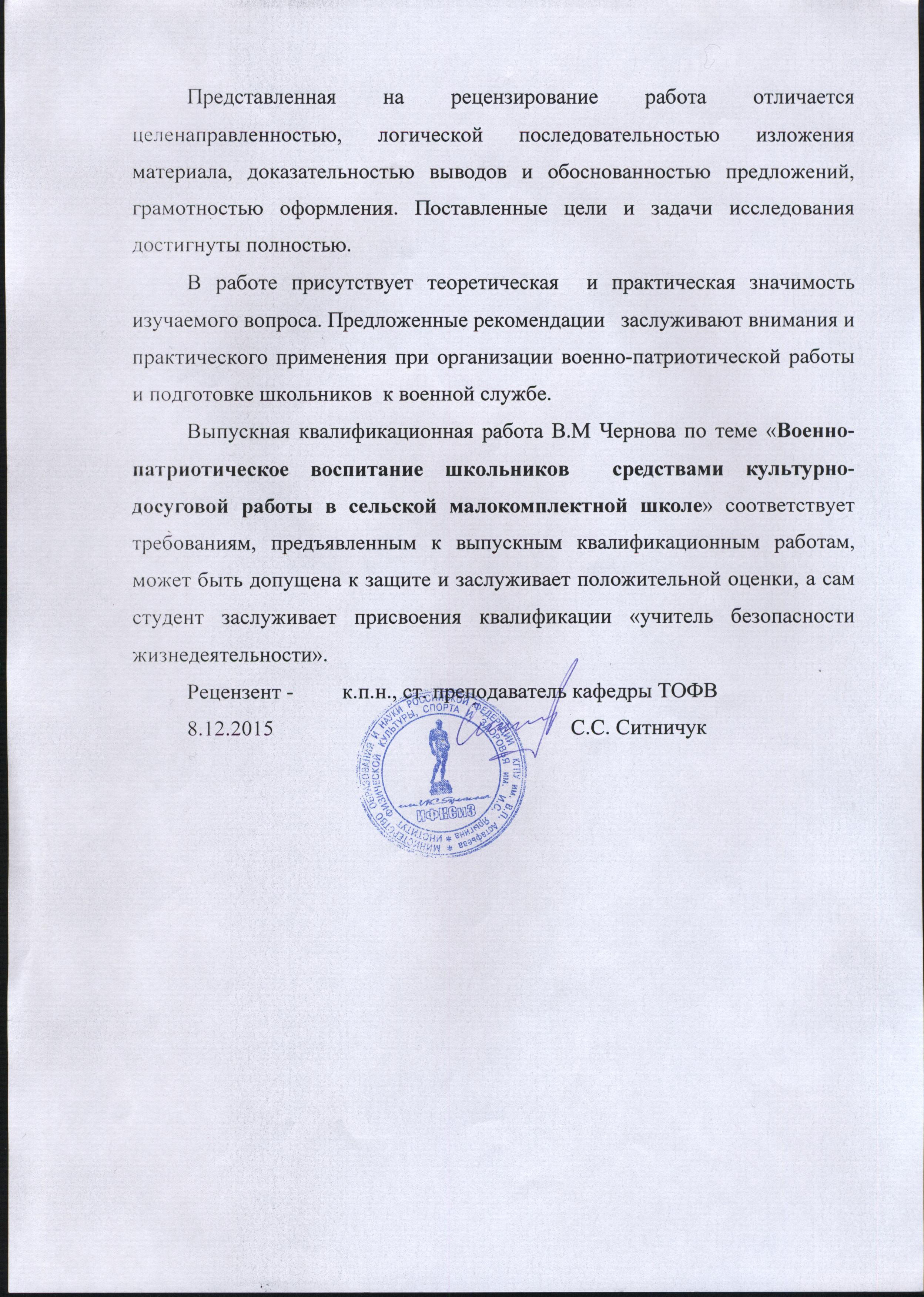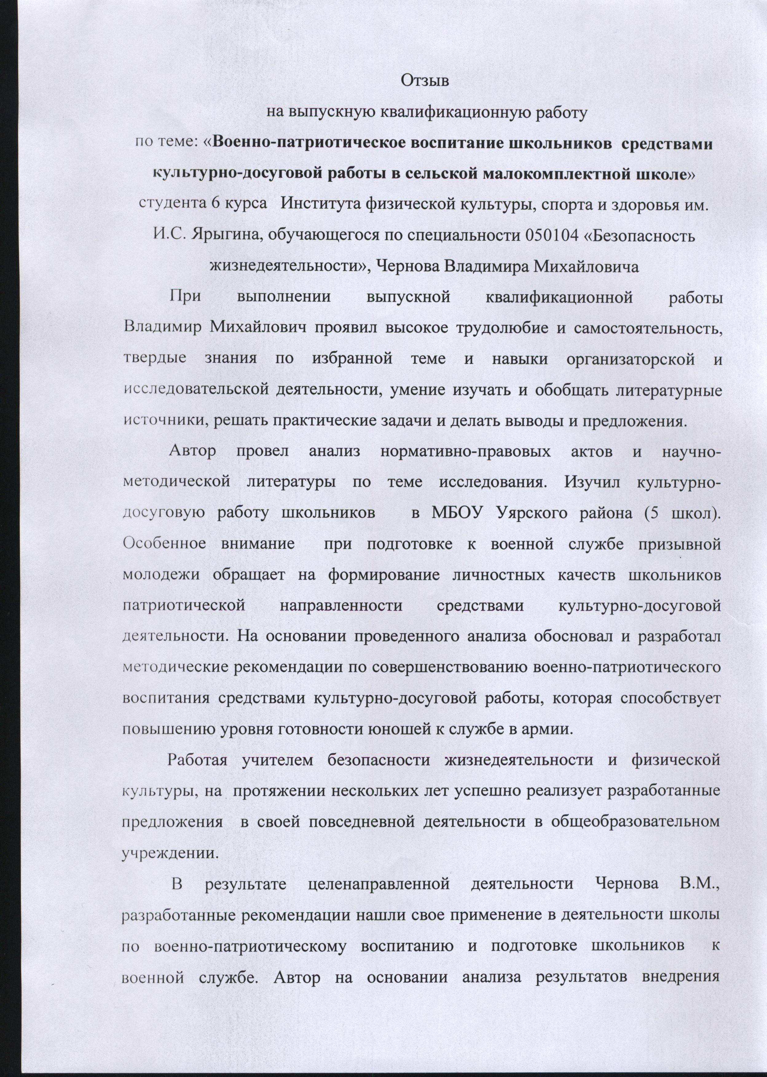 Военно-патриотическое воспитание школьников средствами культурно-досуговой работы в сельской малокомплектной школе.