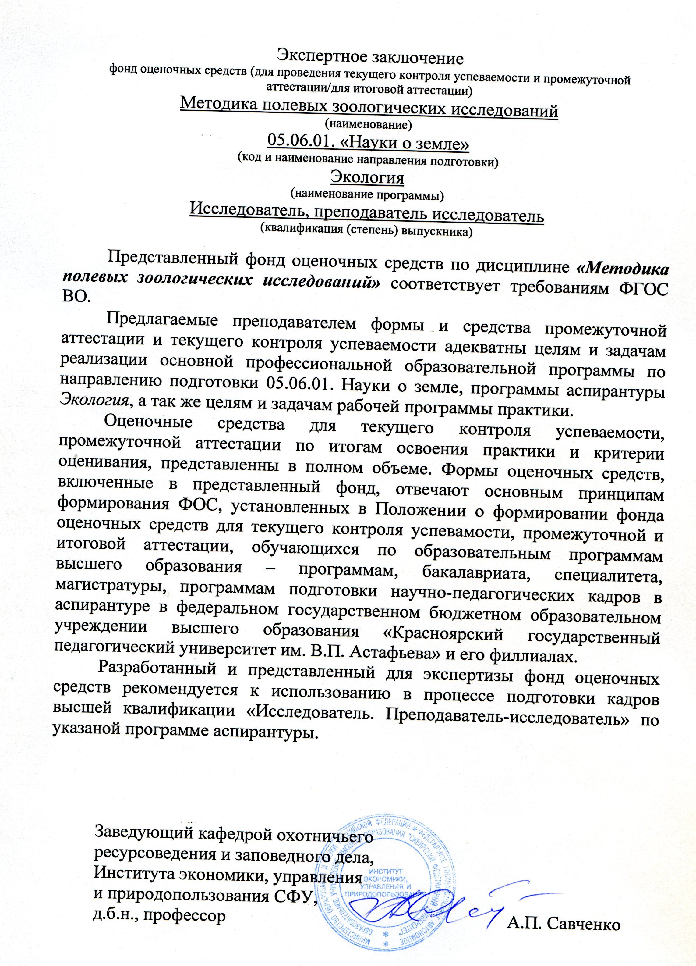 - МЕТОДИКА ПОЛЕВЫХ ЗООЛОГИЧЕСКИХ ИССЛЕДОВАНИЙ. Рабочая программа дисциплины. Образовательная программа 05.06.01 Науки о земле- Экология