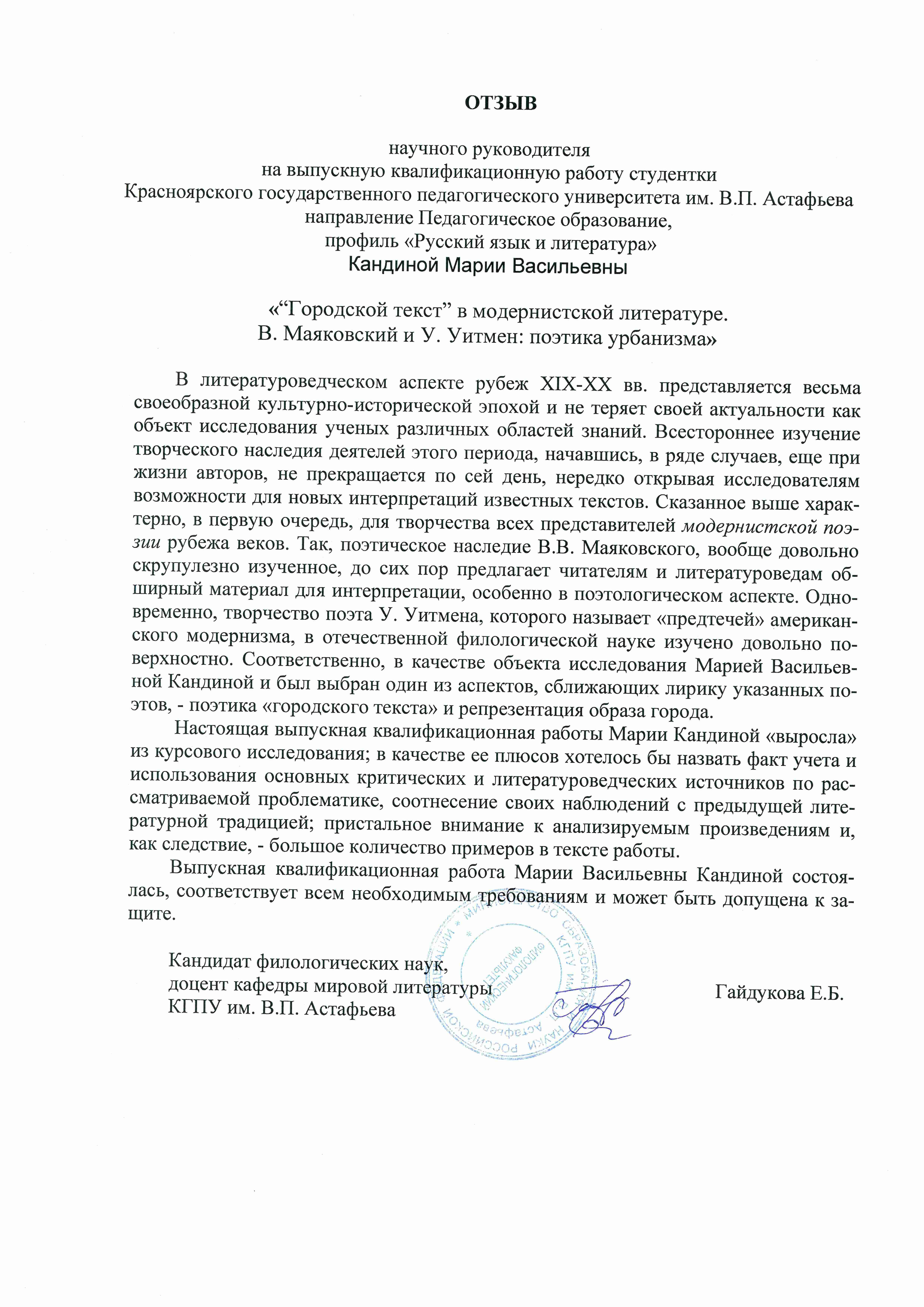 ««Городской текст» в модернистской литературе. В.Маяковский и У.Уитмен: поэтика урбанизма»