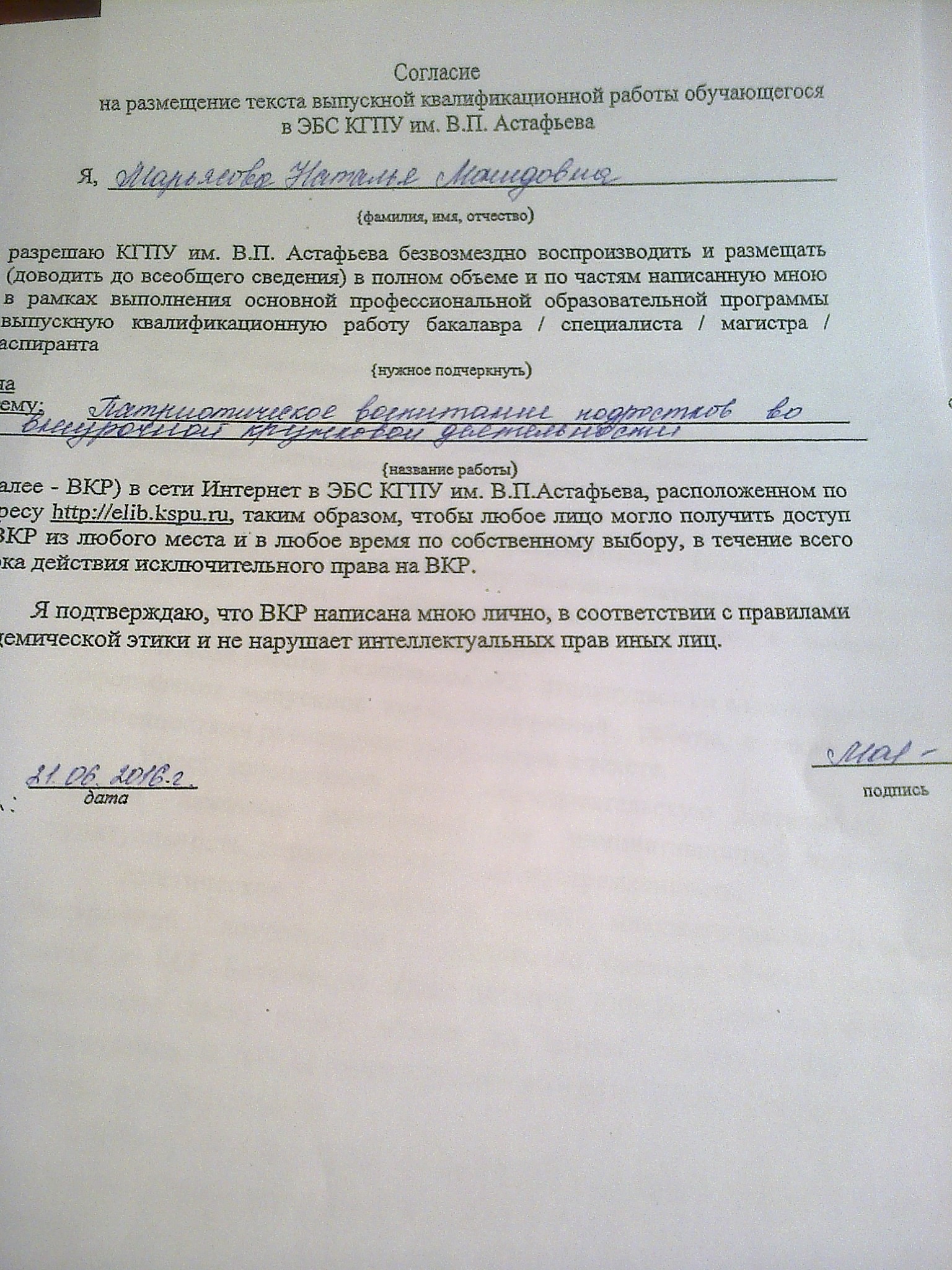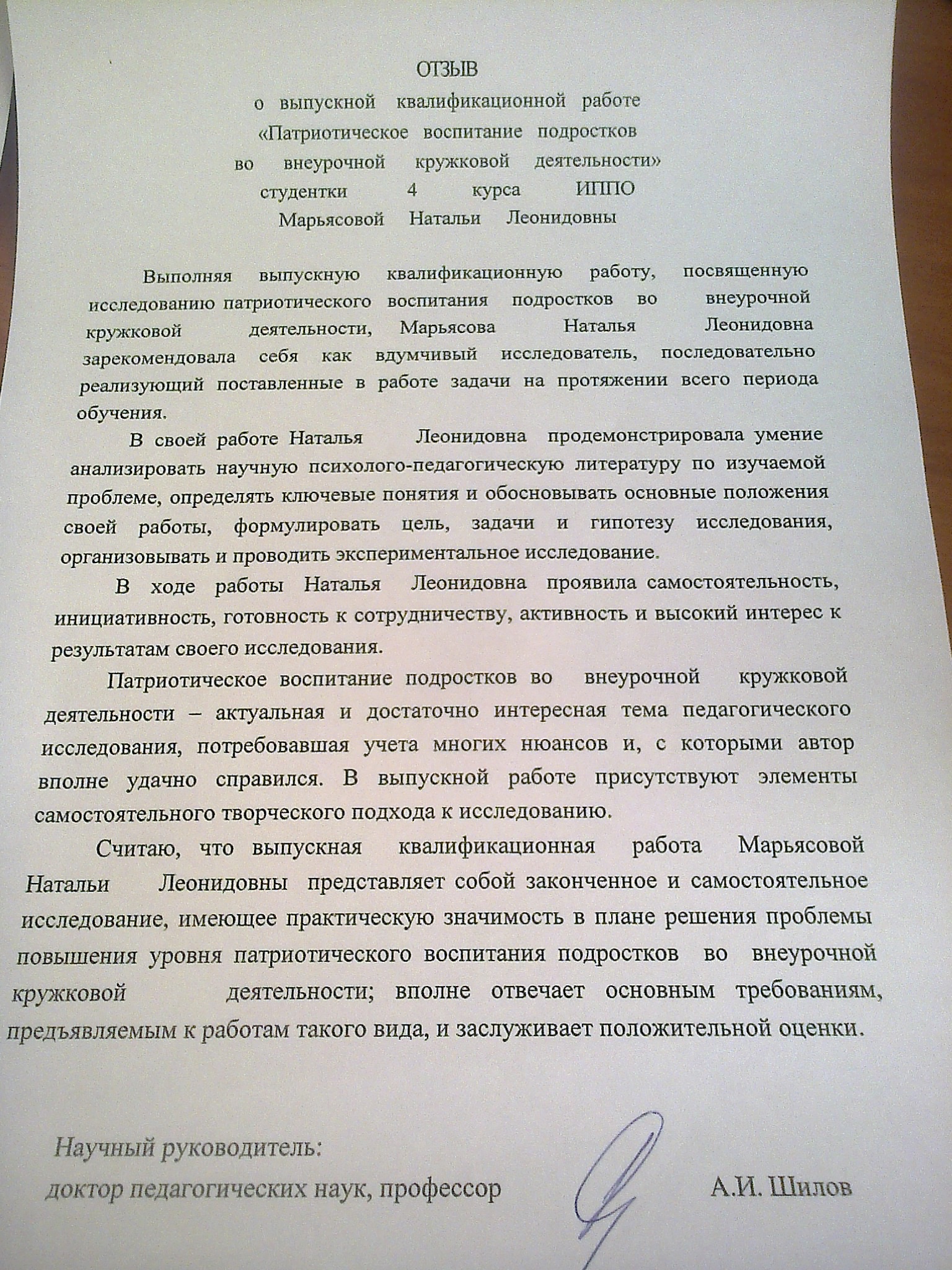 Патриотическое воспитание подростков во внеурочной кружковой деятельности