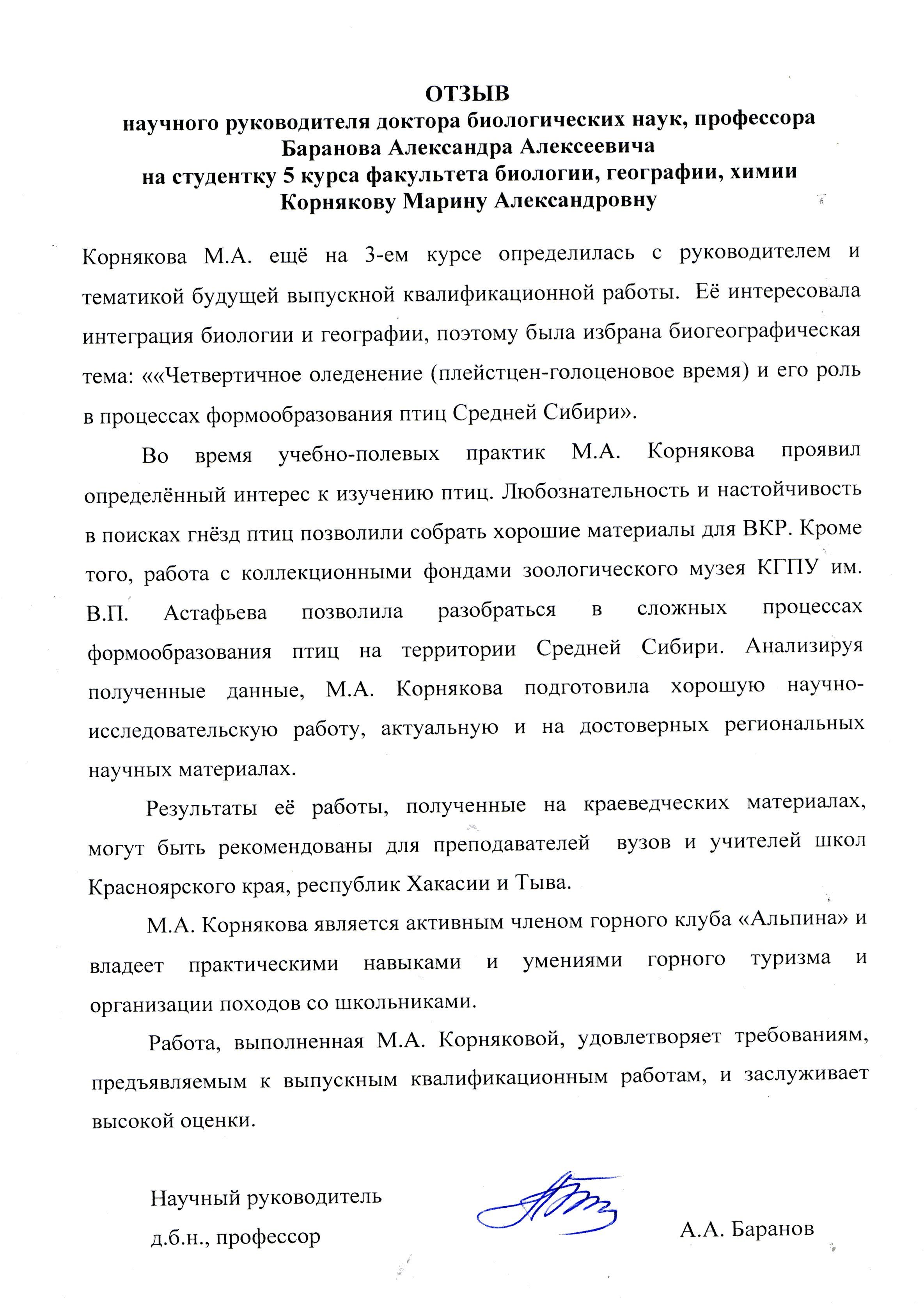 Корнякова Марина Александровна РАЗРАБОТКА ЭЛЕКТИВНОГО КУРСА: ЧЕТВЕРТИЧНОЕ ОЛЕДЕНЕНИЕ (ПЛЕЙСТОЦЕН-ГОЛОЦЕНОВОЕ ВРЕМЯ) И ЕГО РОЛЬ В ПРОЦЕССАХ ФОРМИРОВАНИЯ ПТИЦ СРЕДНЕЙ СИБИРИ