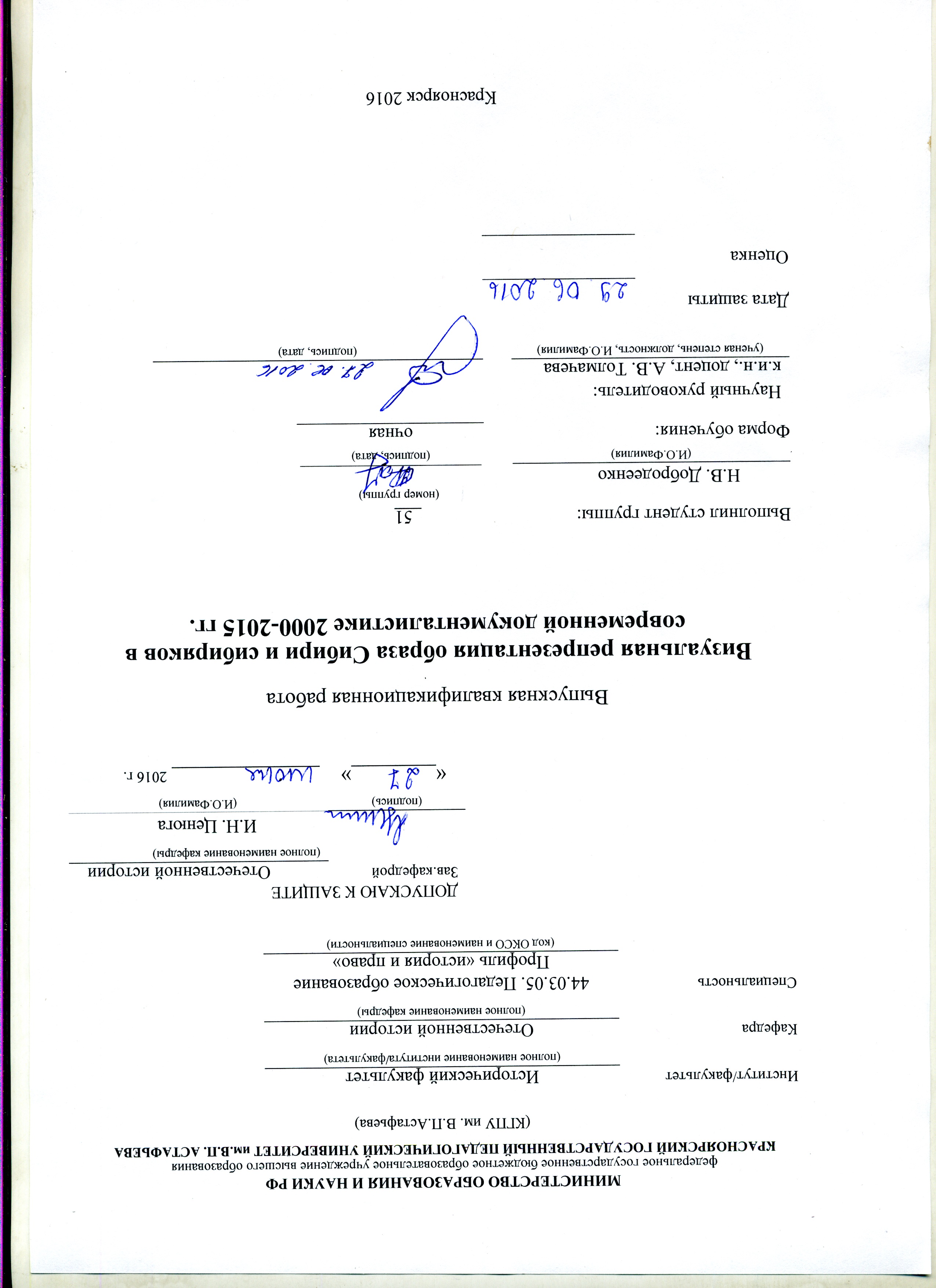 Образ Сибири и сибиряков в современном документальном кинематографе 2000 - 2015 гг.