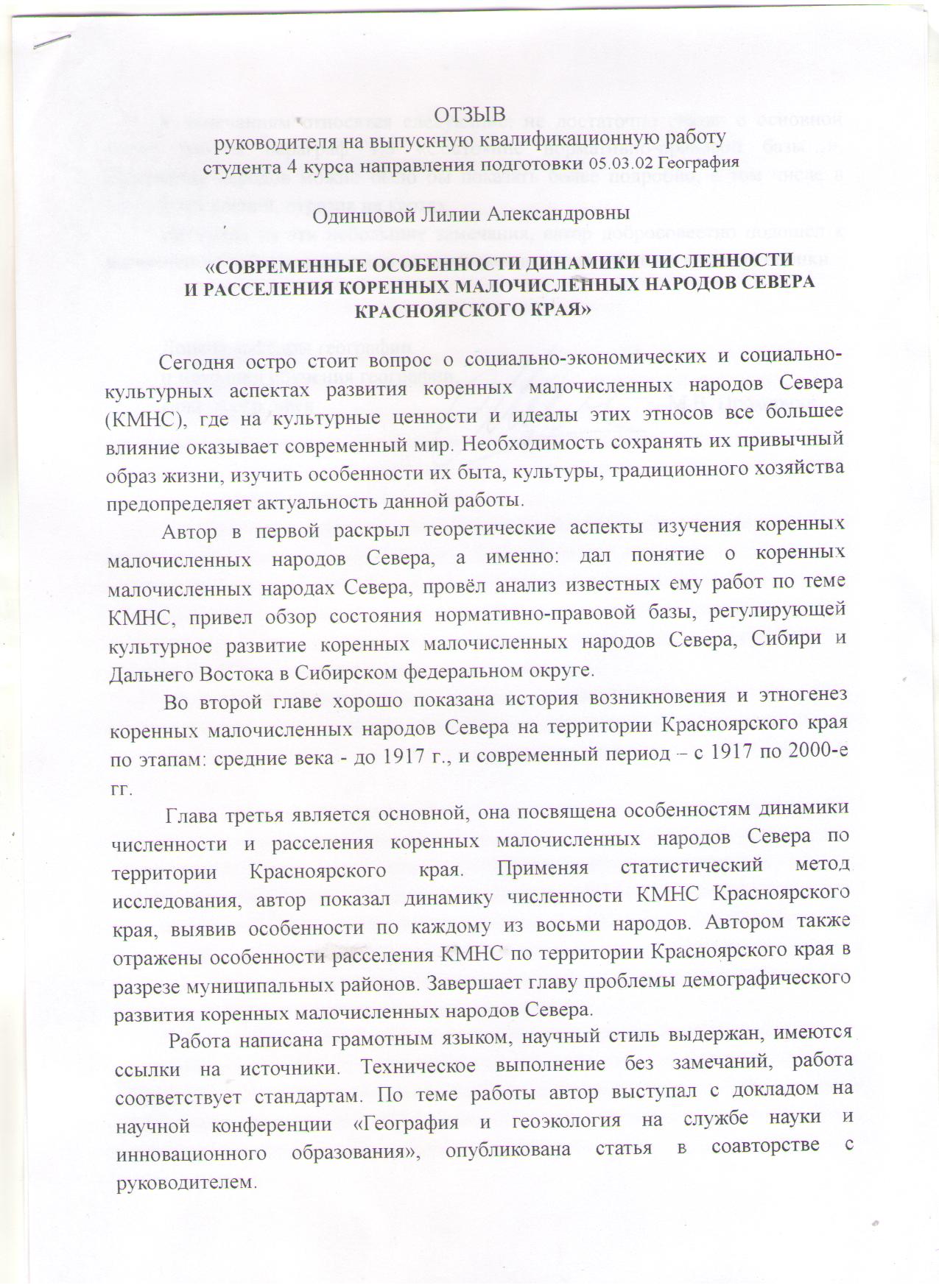 Современные особенности динамики численности и расселения коренных малочисленных народов Севера Красноярского края