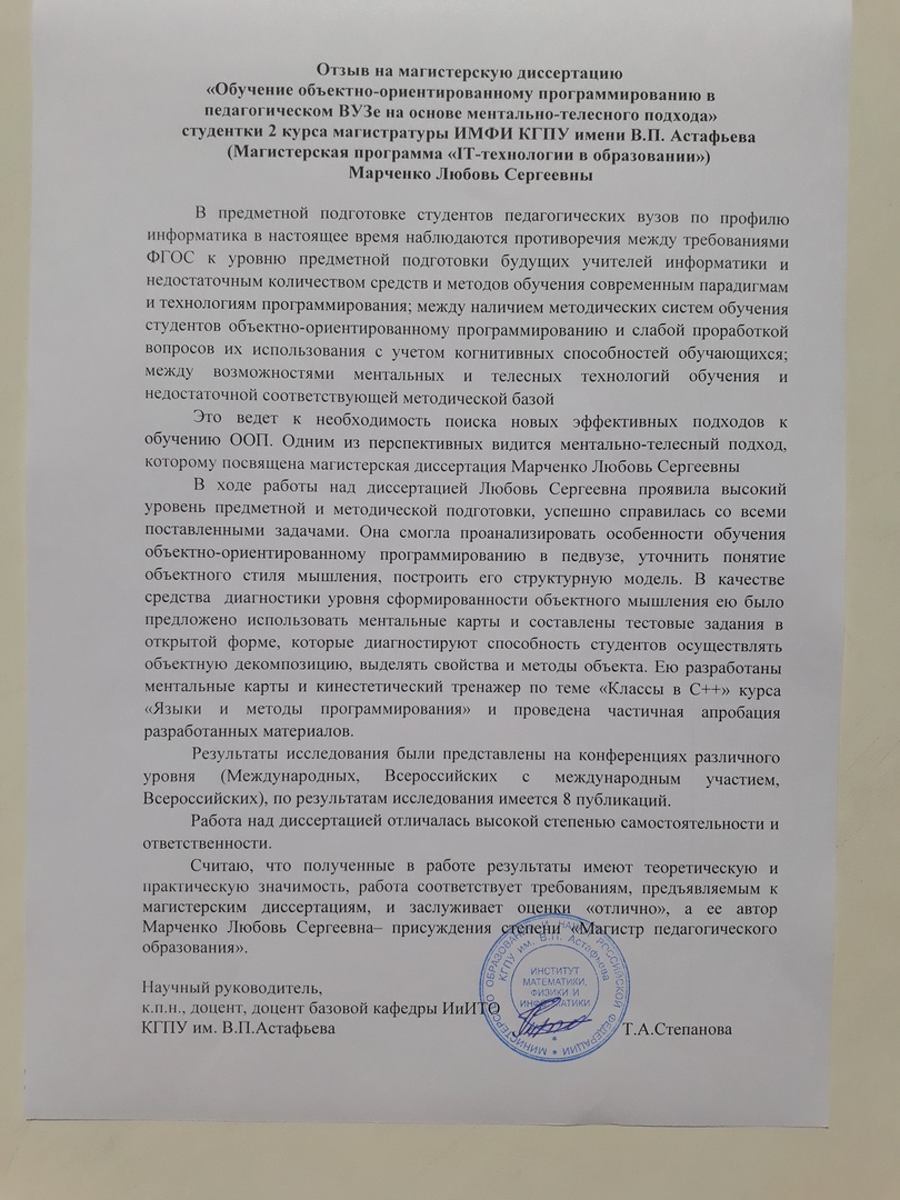 Обучение объектно-ориентированному программированию в педагогическом ВУЗе на основе ментально-телесного подхода