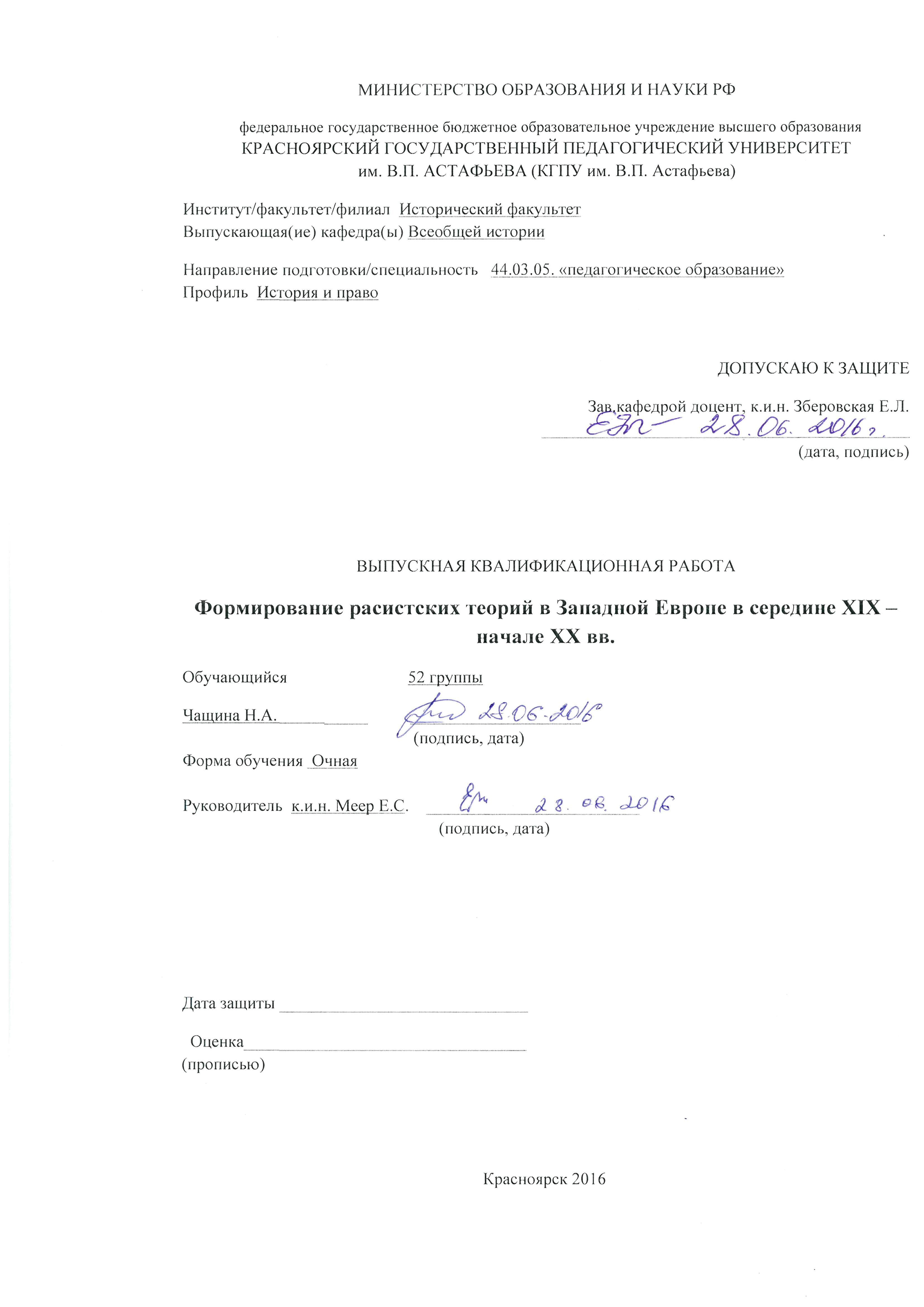 Формирование расистских теорий в Западной Европе в середине XIX- начале XX вв.