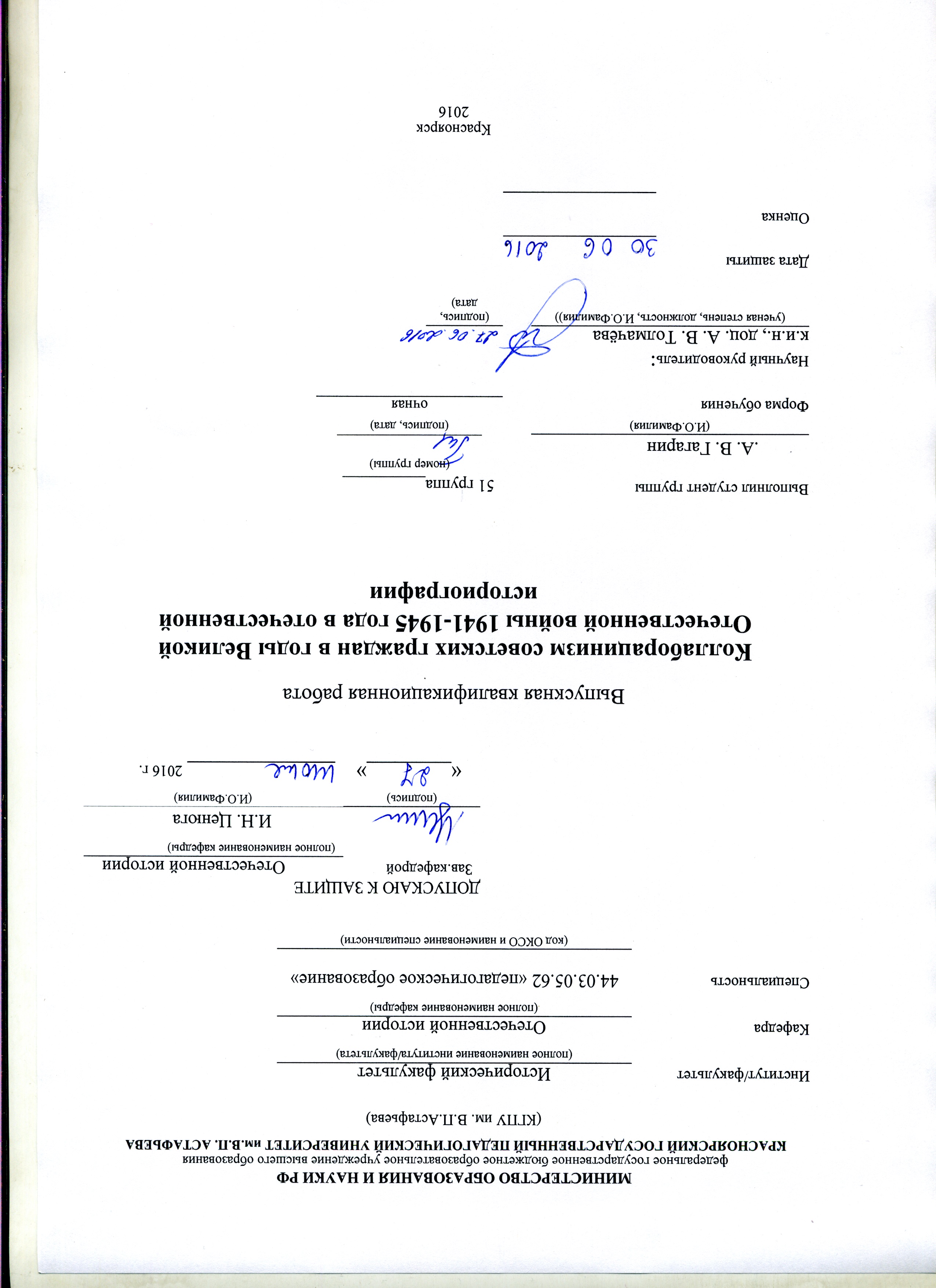 Коллаборационизм советских граждан в годы Великой Отечественной войны 1941 - 1945 гг. в отечественной историографии