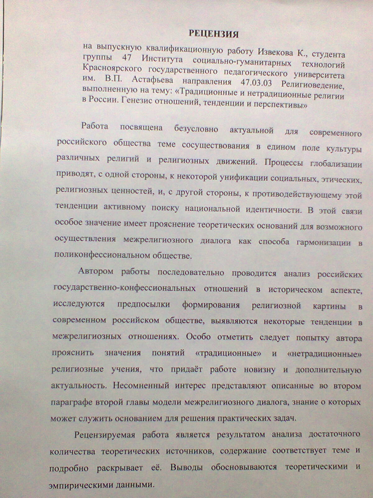 Традициолнные и нетрадиционные религии в России. Генезис, тенденции и перспективы взаимоотношений