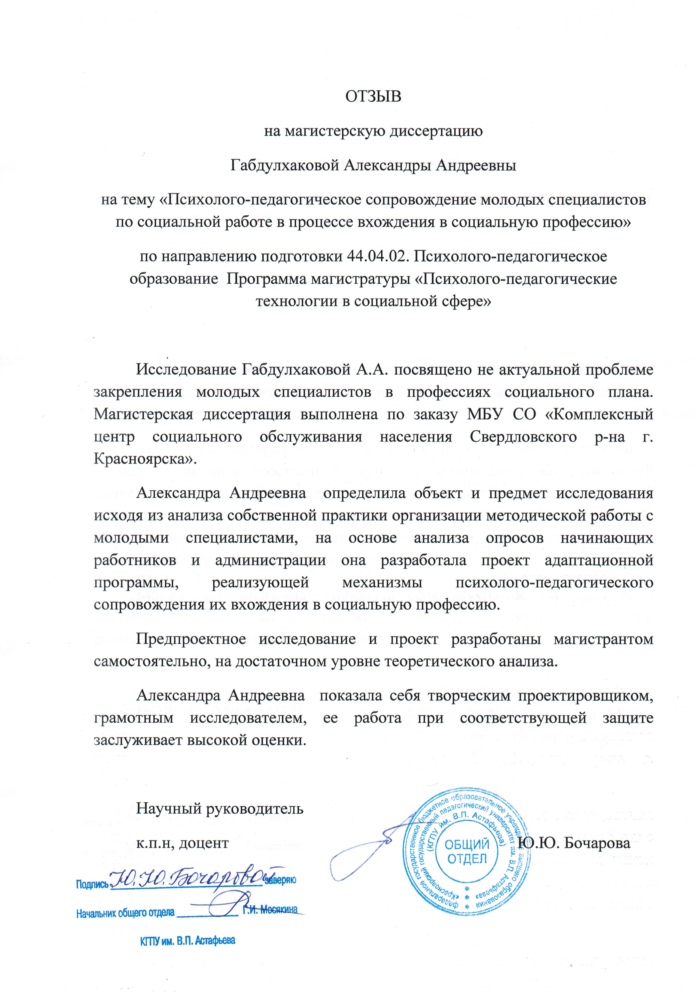 Габдулхакова Александра Андреевна Психолого-педагогическое сопровождение молодых специалистов по социальной работе в процессе вхождения в социальную профессию