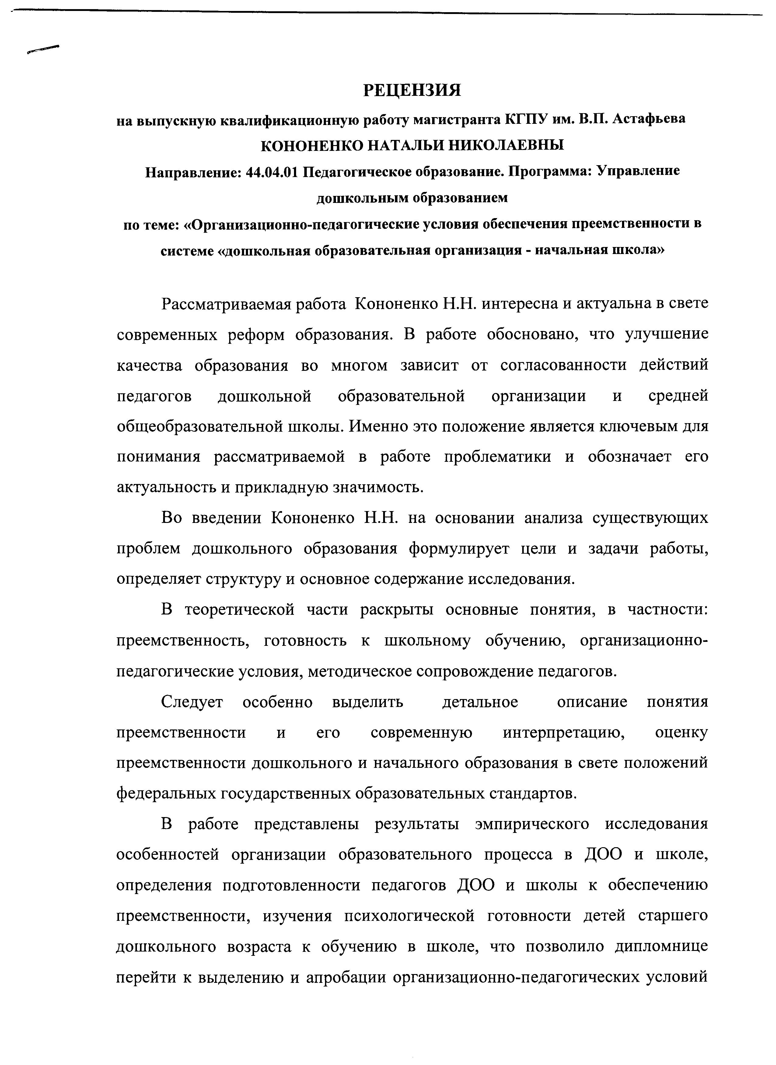 Организационно-педагогические условия обеспечения преемственности в системе «дошкольная образовательная организация – начальная школа»