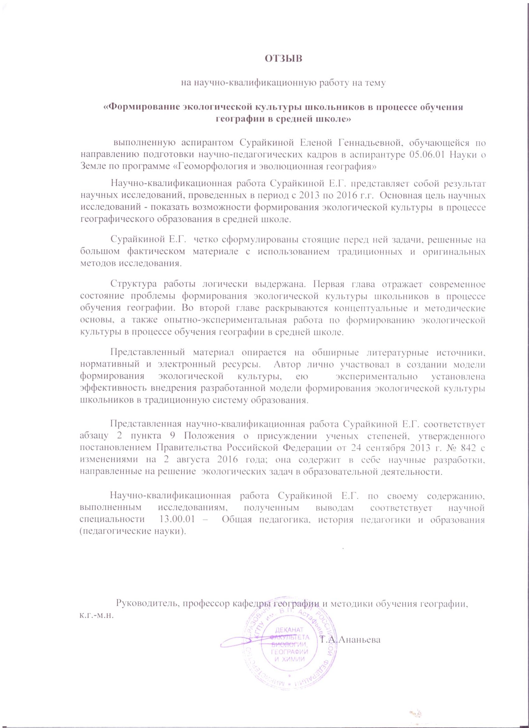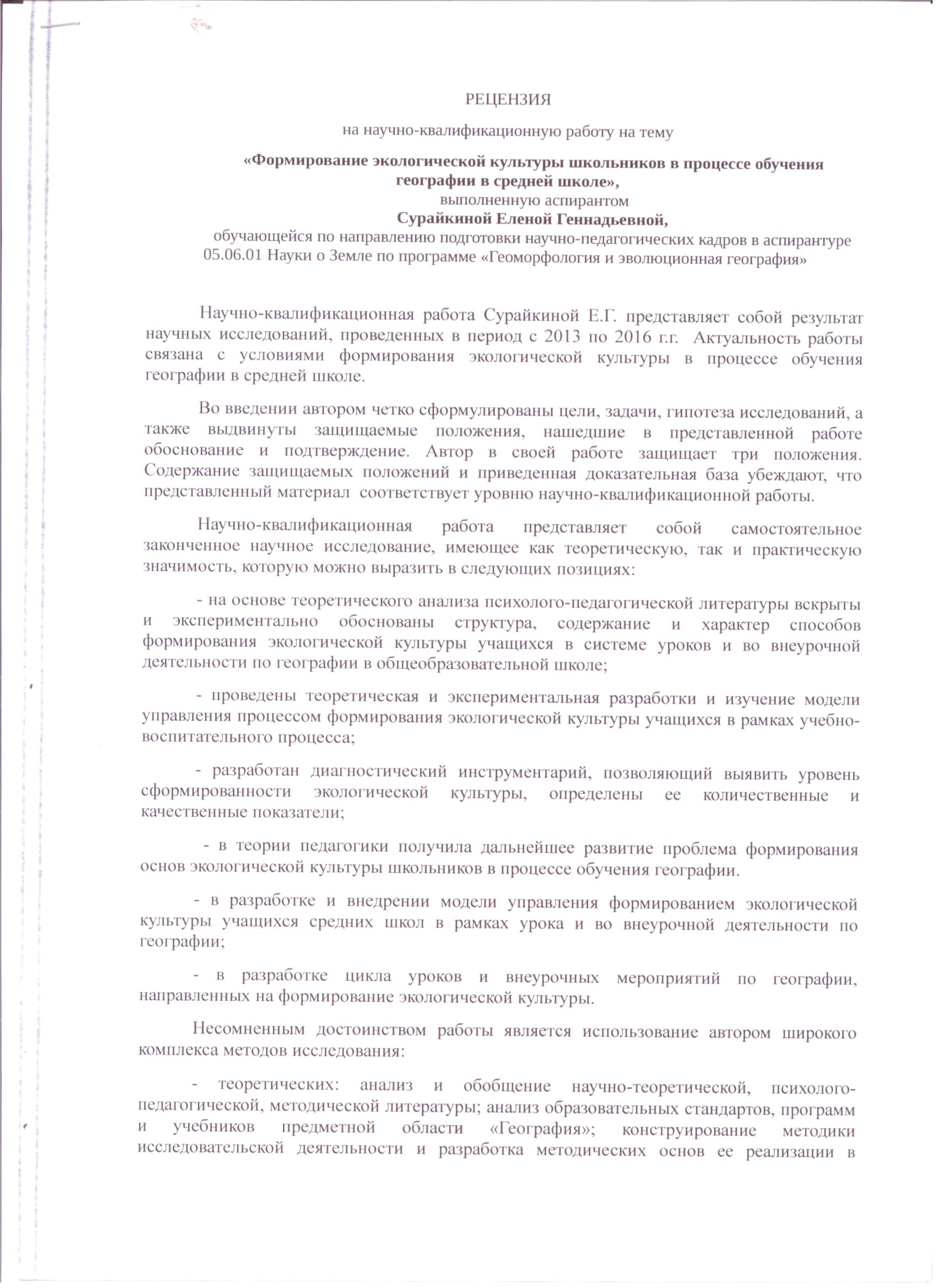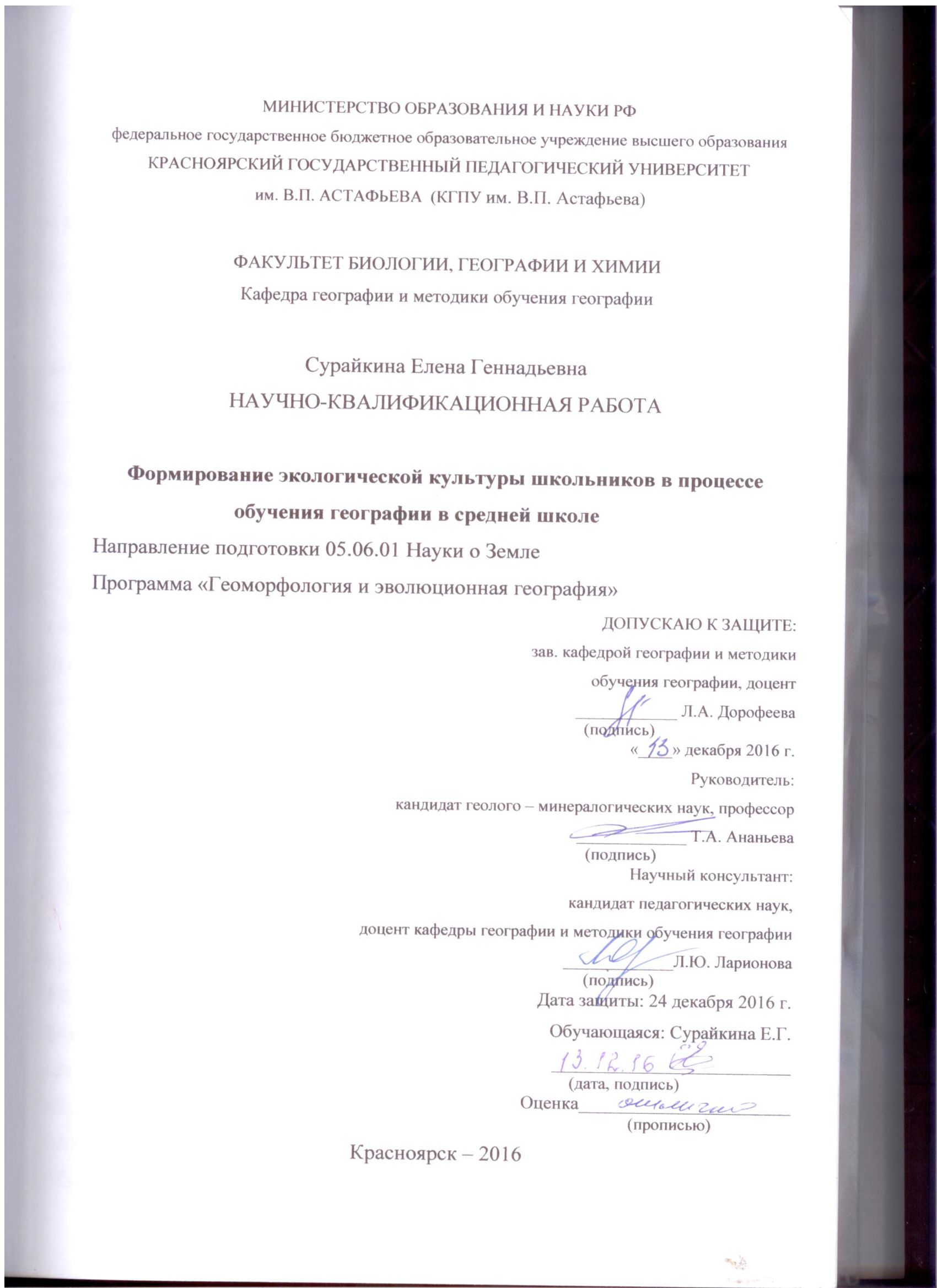 Формирование экологической культуры школьников в процессе обучения географии в средней школе