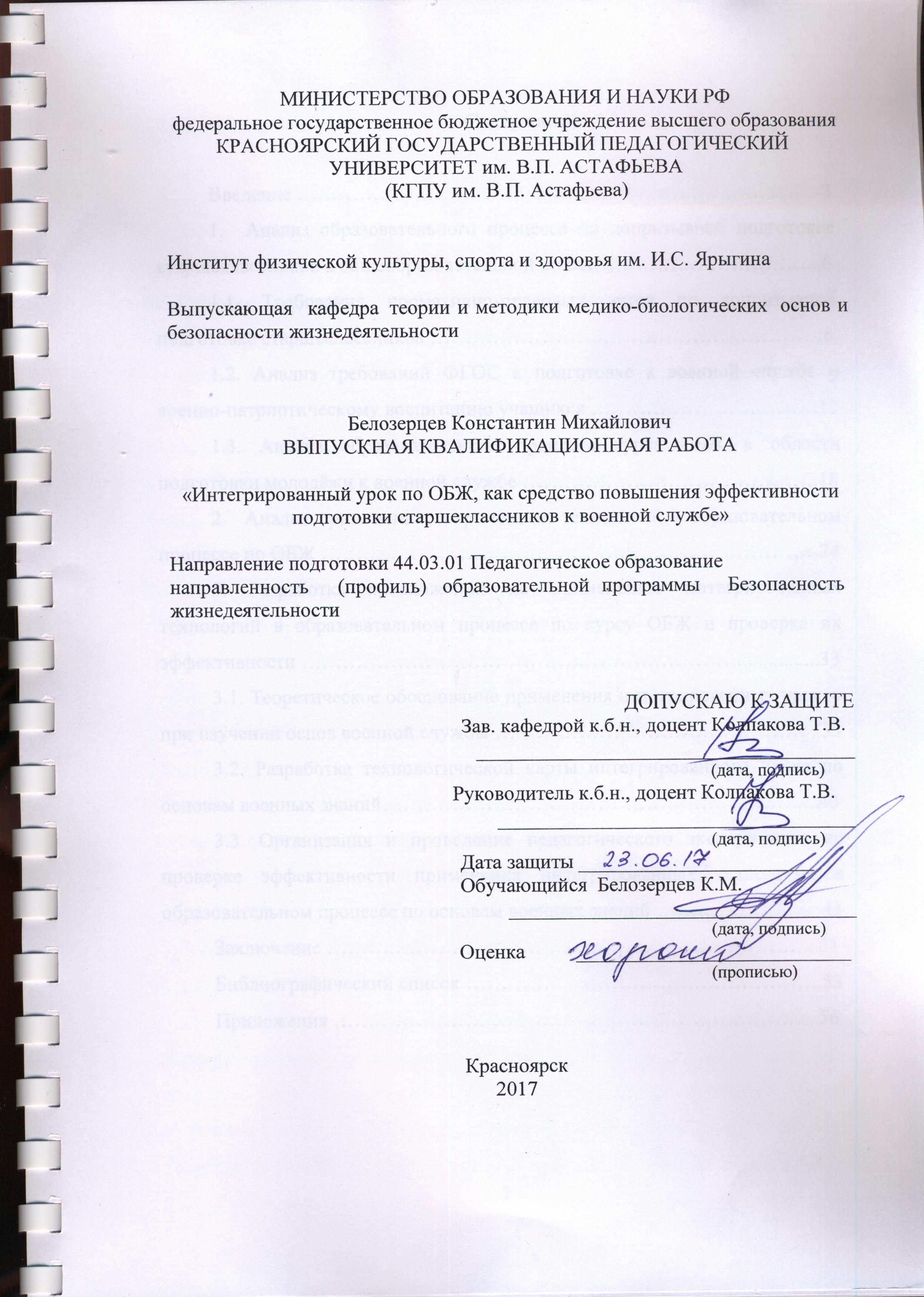 Тема «Интегрированный урок по ОБЖ, как средство повышения эффективности подготовки старшеклассников к военной службе»