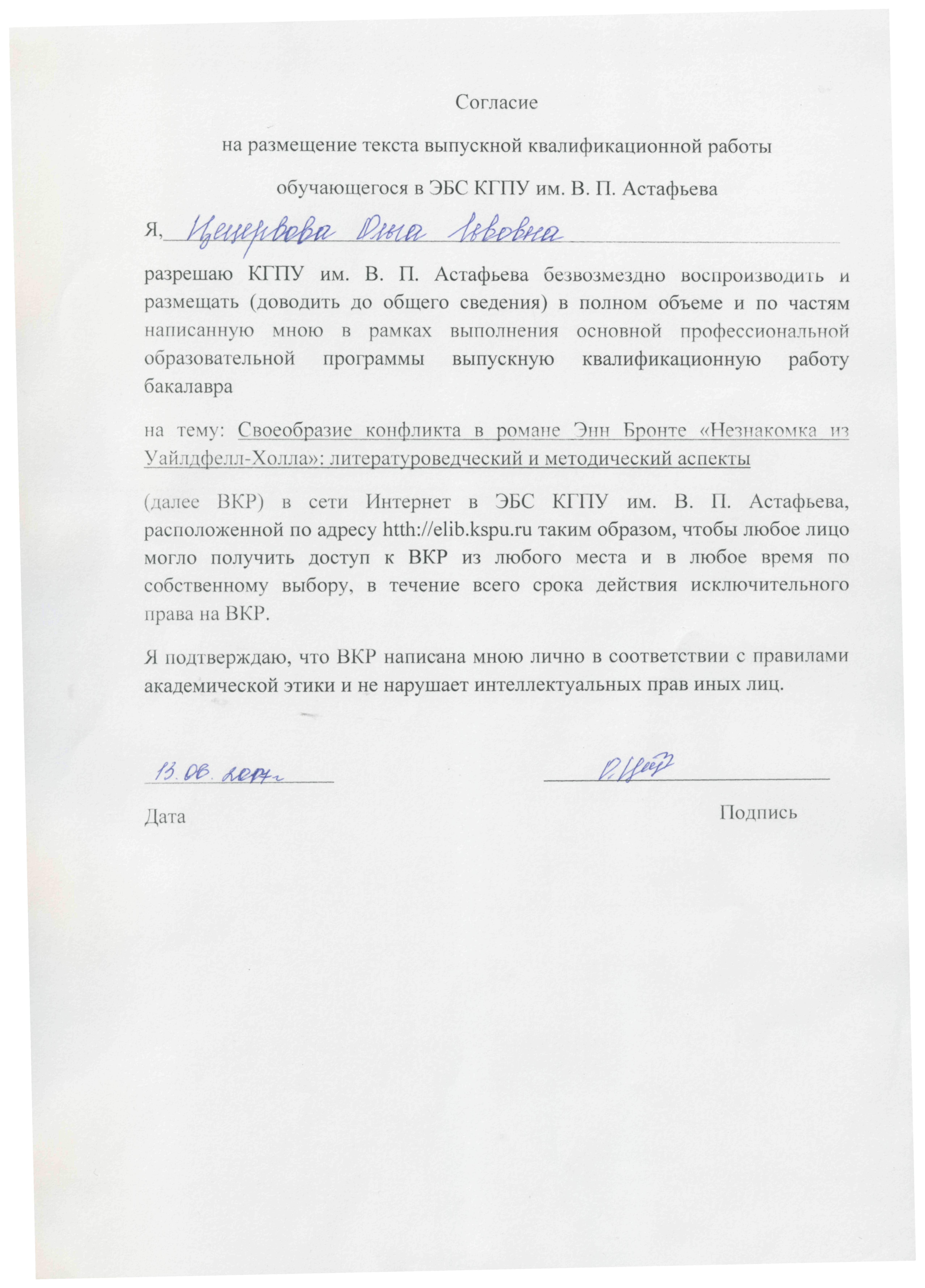 Своеобразие конфликта в романе Энн Бронте "Незнакомка из Уайлдфелл-Холла": литературоведческий и методический аспекты.