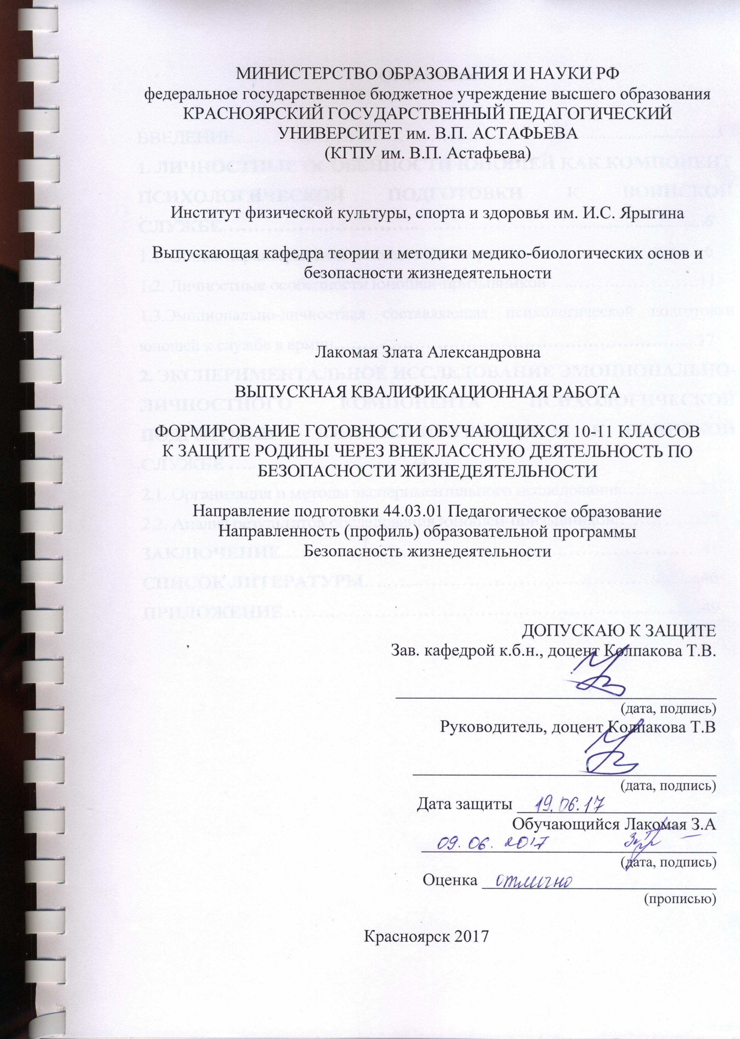 ФОРМИРОВАНИЕ ГОТОВНОСТИ ОБУЧАЮЩИХСЯ 10-11 КЛАССОВ К ЗАЩИТЕ РОДИНЫ ЧЕРЕЗ ВНЕКЛАССНУЮ ДЕЯТЕЛЬНОСТЬ ПО БЕЗОПАСНОСТИ ЖИЗНЕДЕЯТЕЛЬНОСТИ