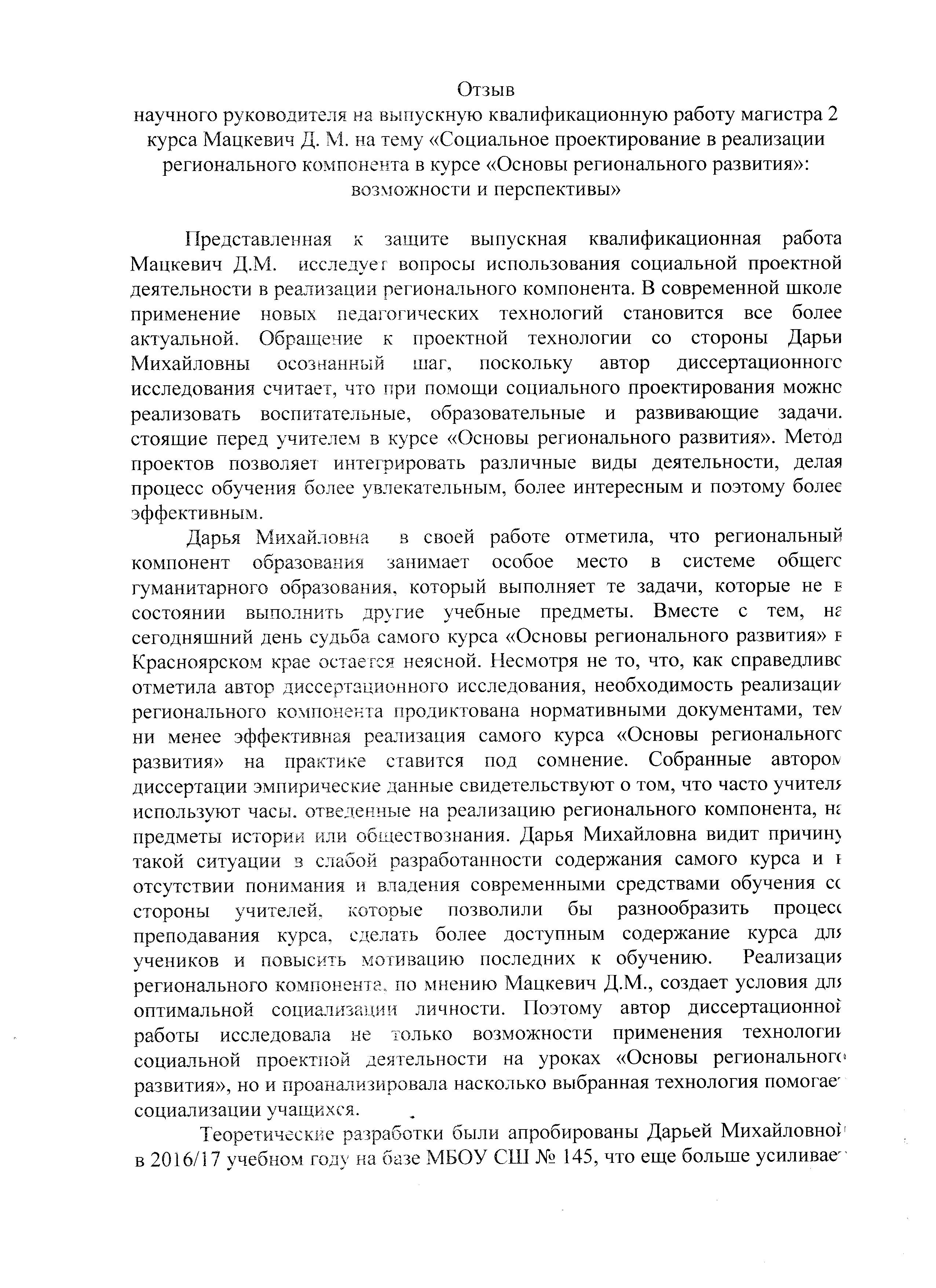 Социальное проектирование в реализации регионального компонента в курсе «Основы регионального развития»: возможности и перспективы
