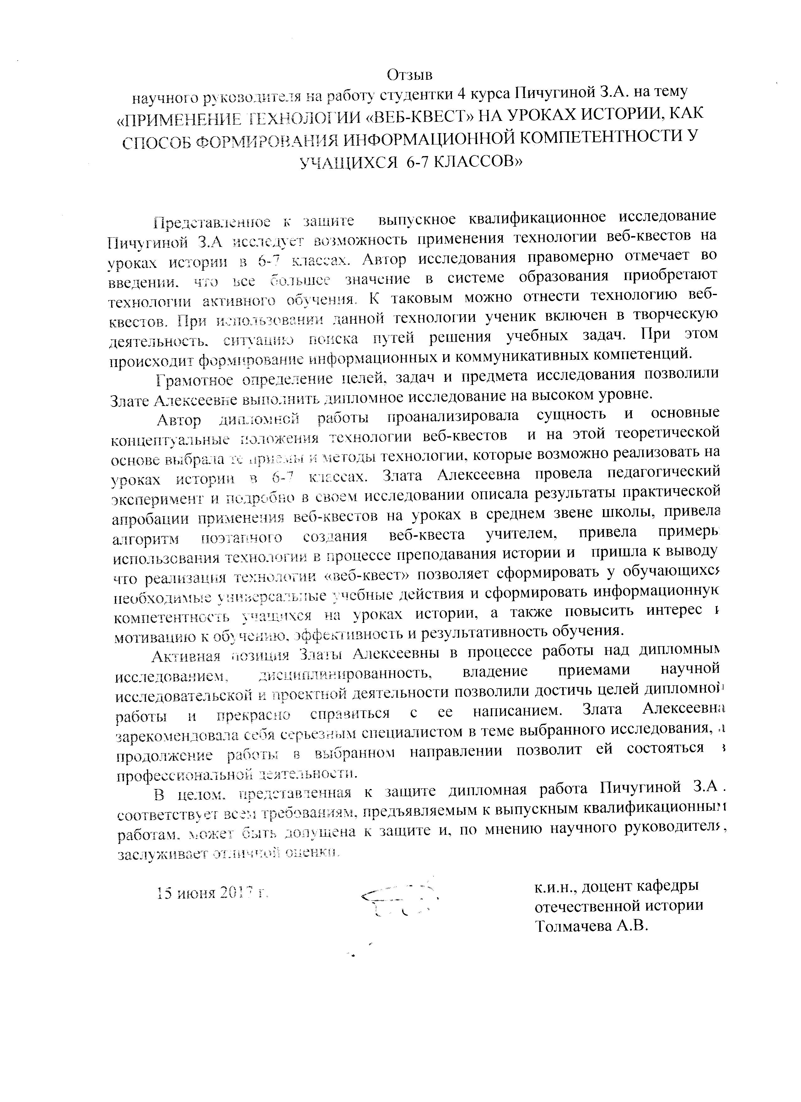 ПРИМЕНЕНИЕ ТЕХНОЛОГИИ «ВЕБ-КВЕСТ» НА УРОКАХ ИСТОРИИ, КАК СПОСОБ ФОРМИРОВАНИЯ ИНФОРМАЦИОННОЙ КОМПЕТЕНТНОСТИ У УЧАЩИХСЯ 6-7 КЛАССОВ