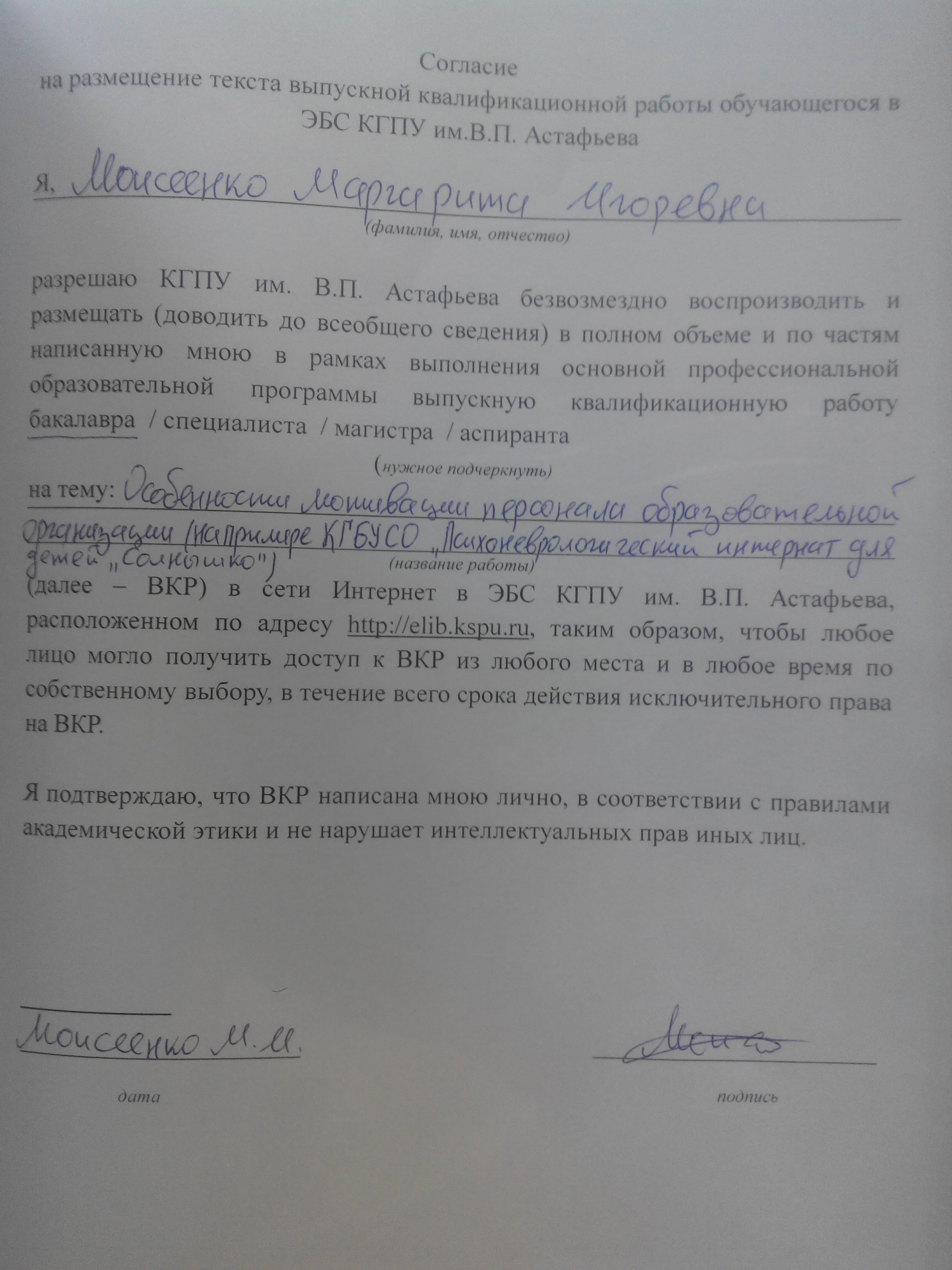 Особенности мотивации персонала образовательной организации (на примере Краевого бюджетного учреждения социального обслуживания "Психоневрологический интернат для детей "Солнышко")