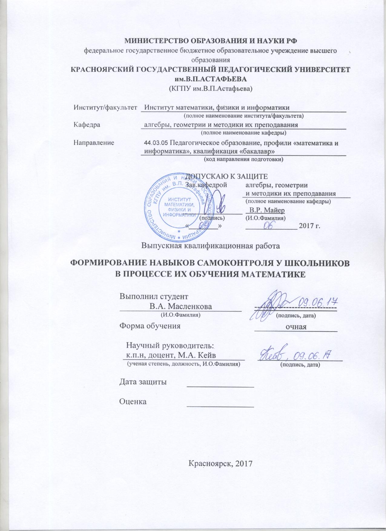 Формирование навыков самоконтроля у школьников в процессе их обучения математике