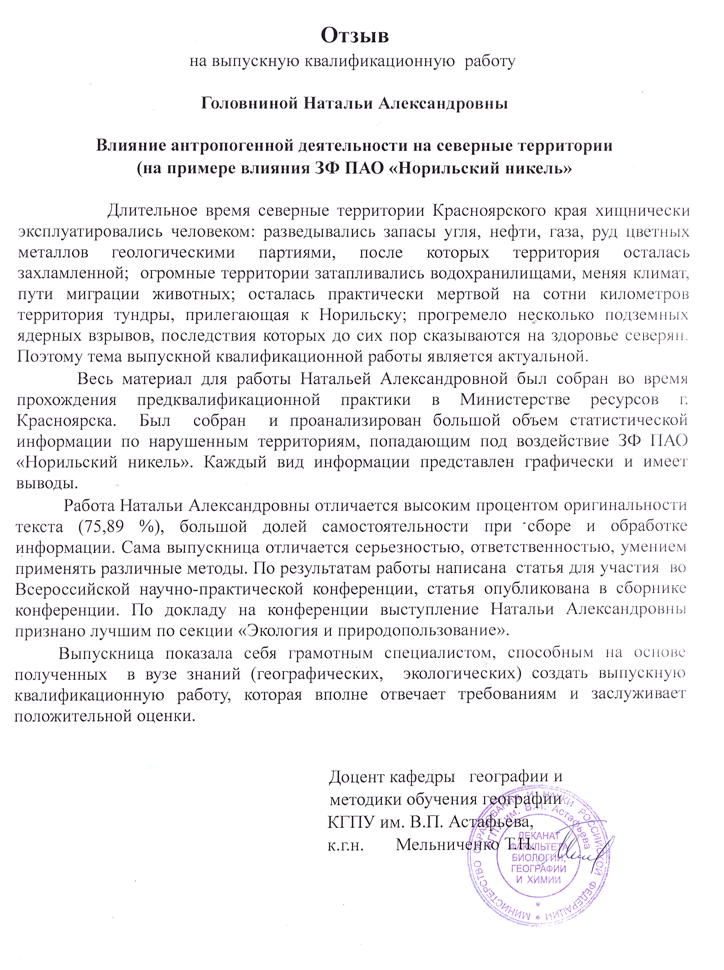 Влияние антропогенной деятельности на северные территории (на примере влияния ЗФ ПАО "Норильский Никель"