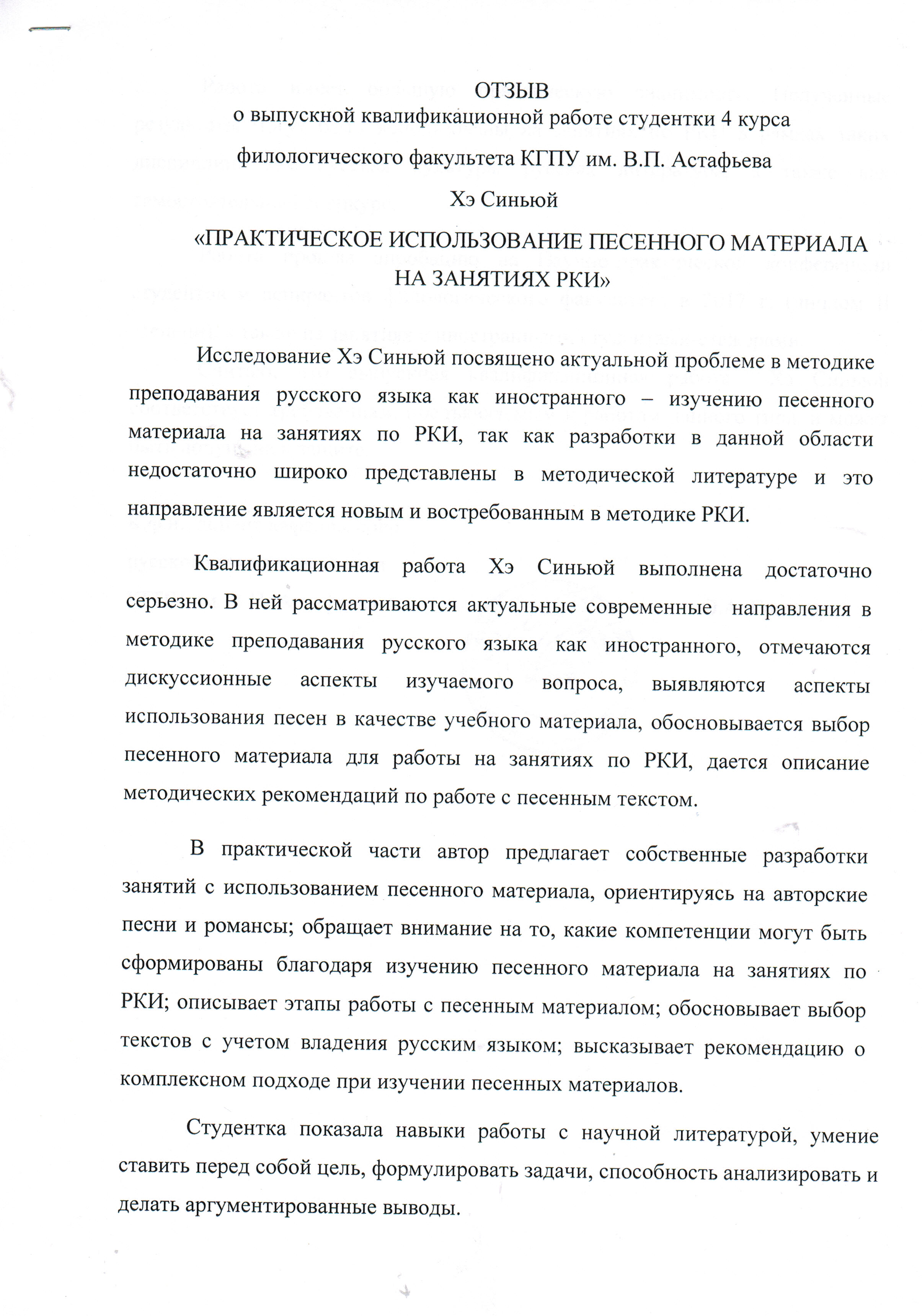 Хэ Синьюй. ПРАКТИЧЕСКОЕ ИСПОЛЬЗОВАНИЕ ПЕСЕННОГО МАТЕРИАЛА НА ЗАНЯТИЯХ РКИ