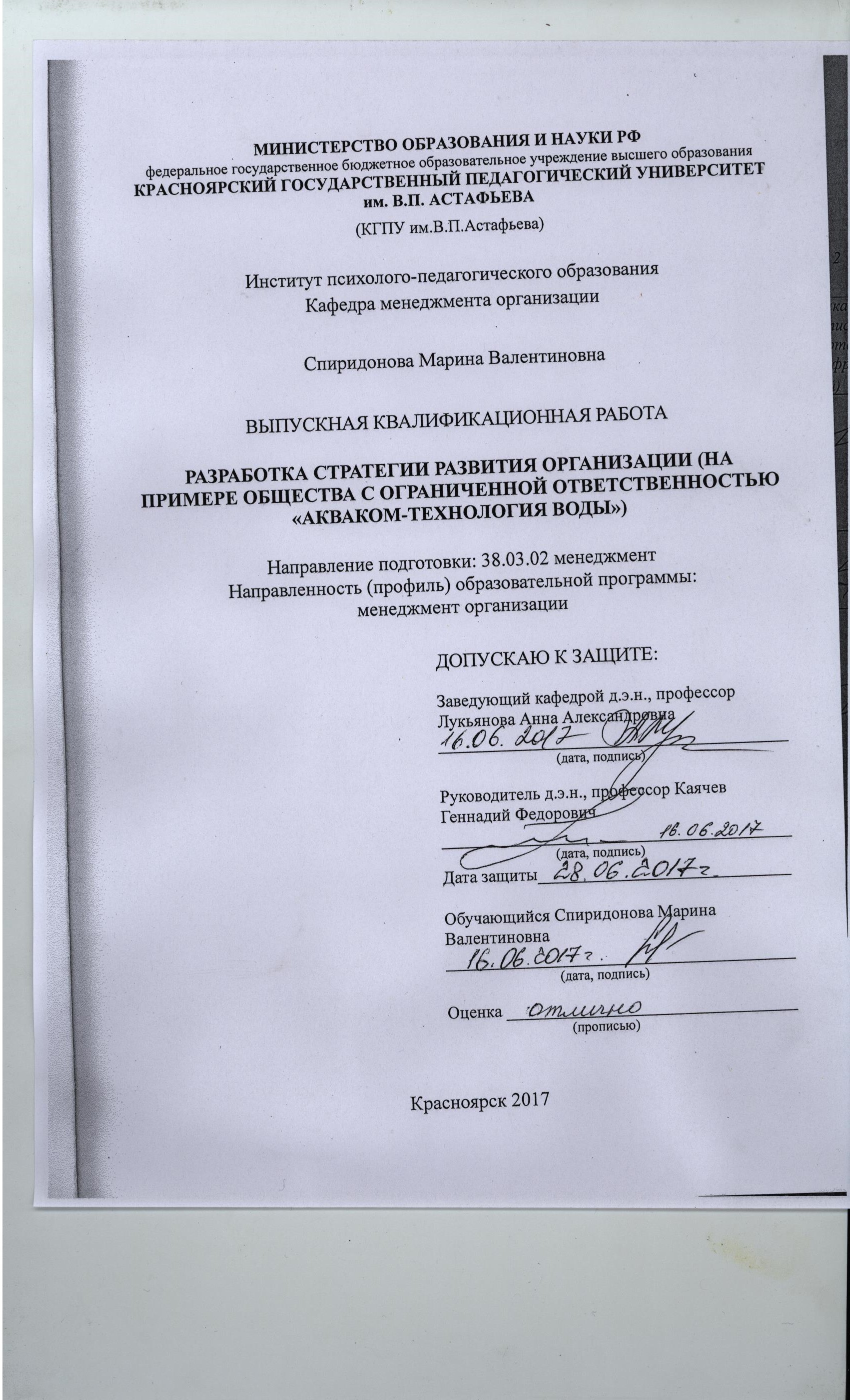 РАЗРАБОТКА СТРАТЕГИИ РАЗВИТИЯ ОРГАНИЗАЦИИ (НА ПРИМЕРЕ ОБЩЕСТВА С ОГРАНИЧЕННОЙ ОТВЕТСТВЕННОСТЬЮ «АКВАКОМ-ТЕХНОЛОГИЯ ВОДЫ»)