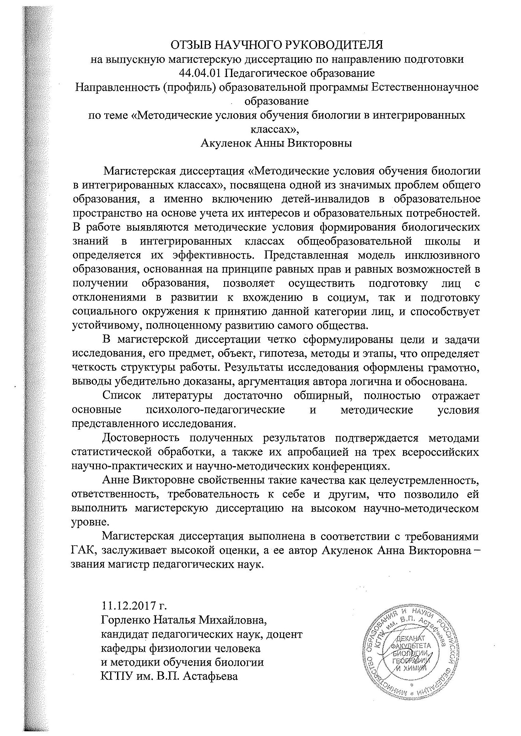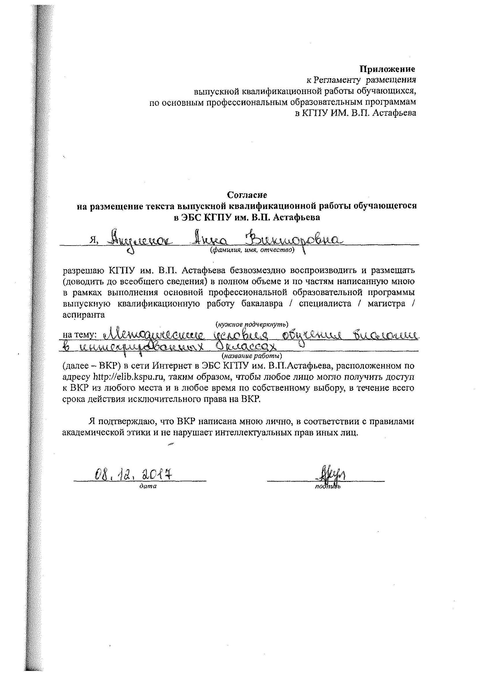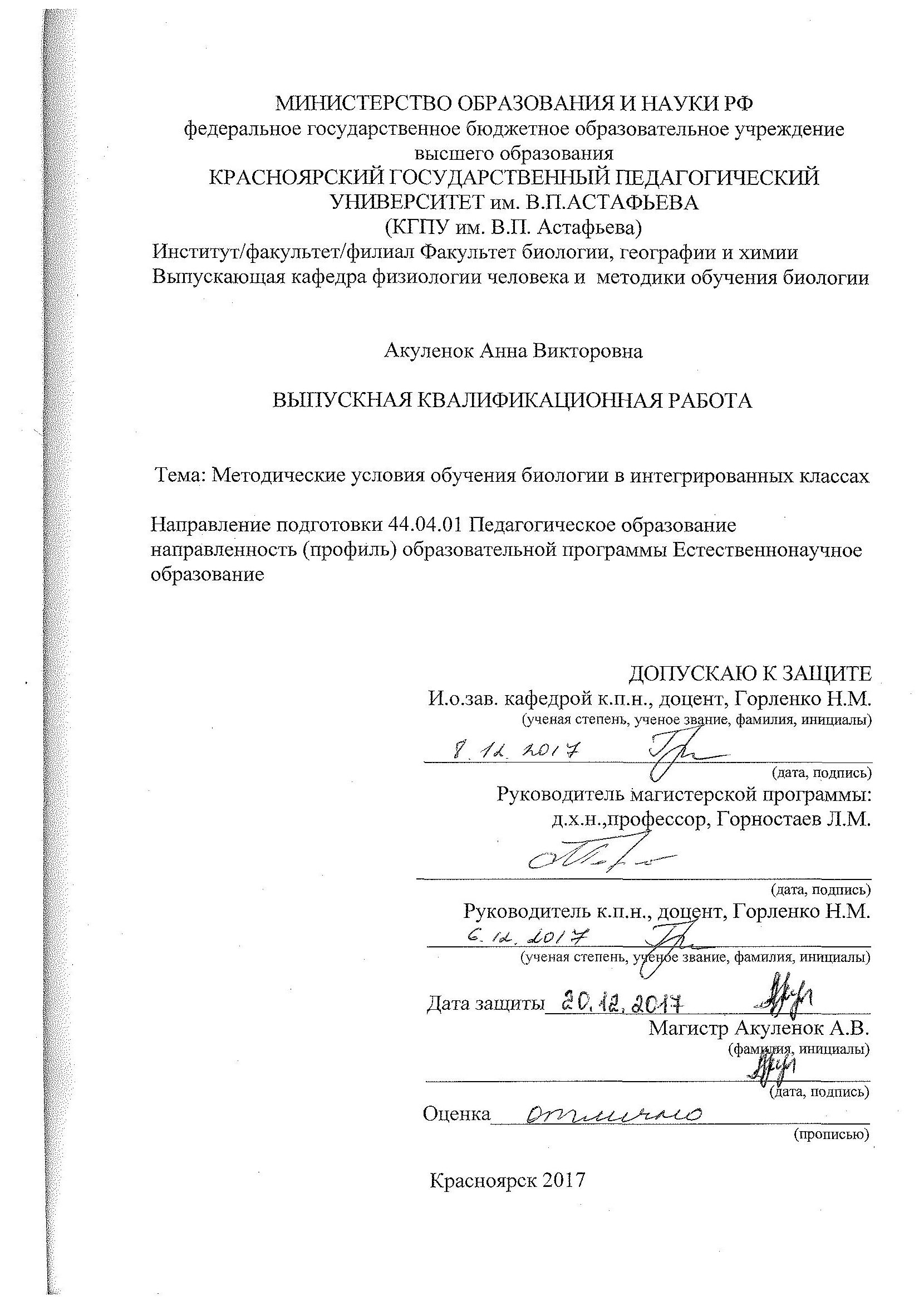 ВКР "Методические условия обучения биологии в интегрированных классах"